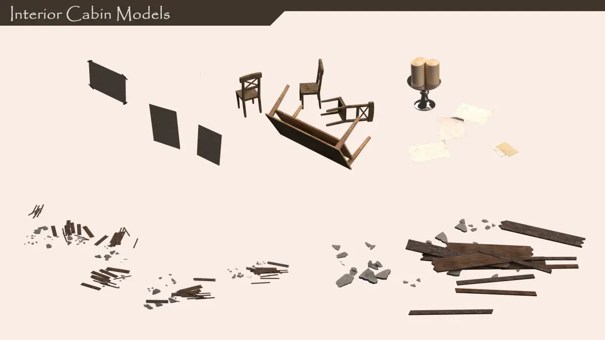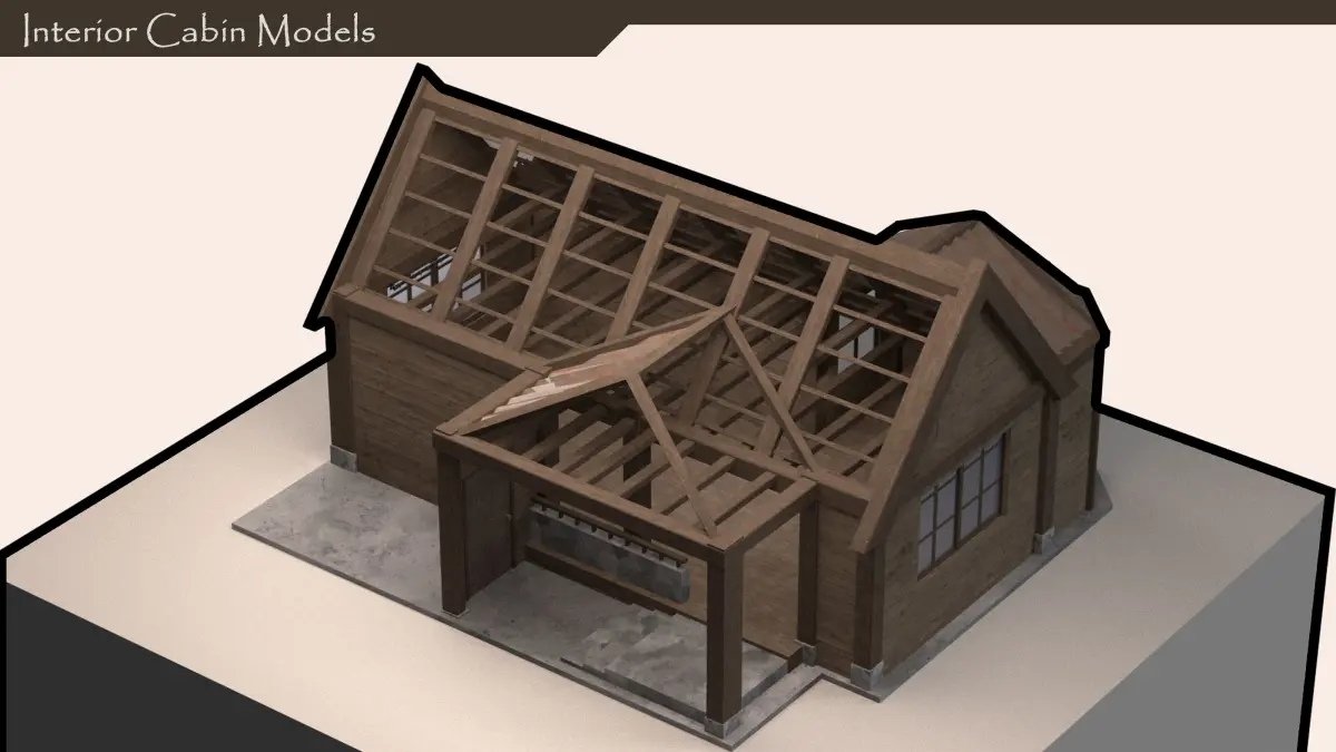 A background set showcase of an interior cabin, outcast in the woods.