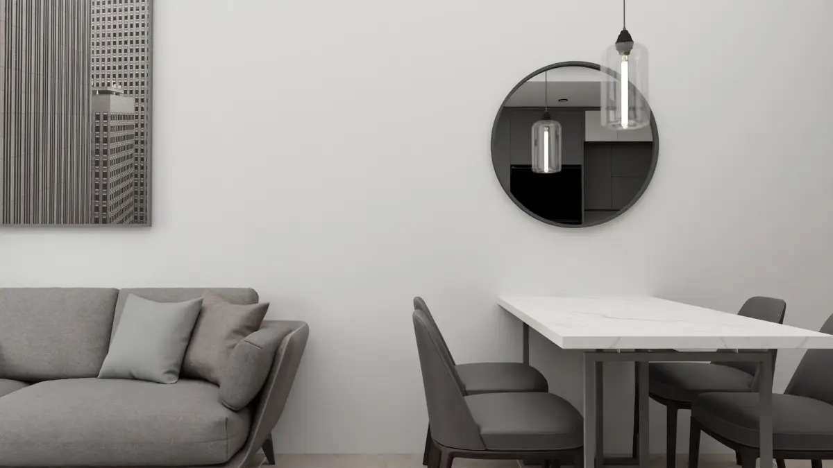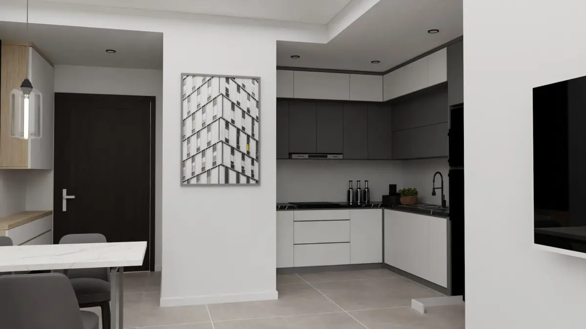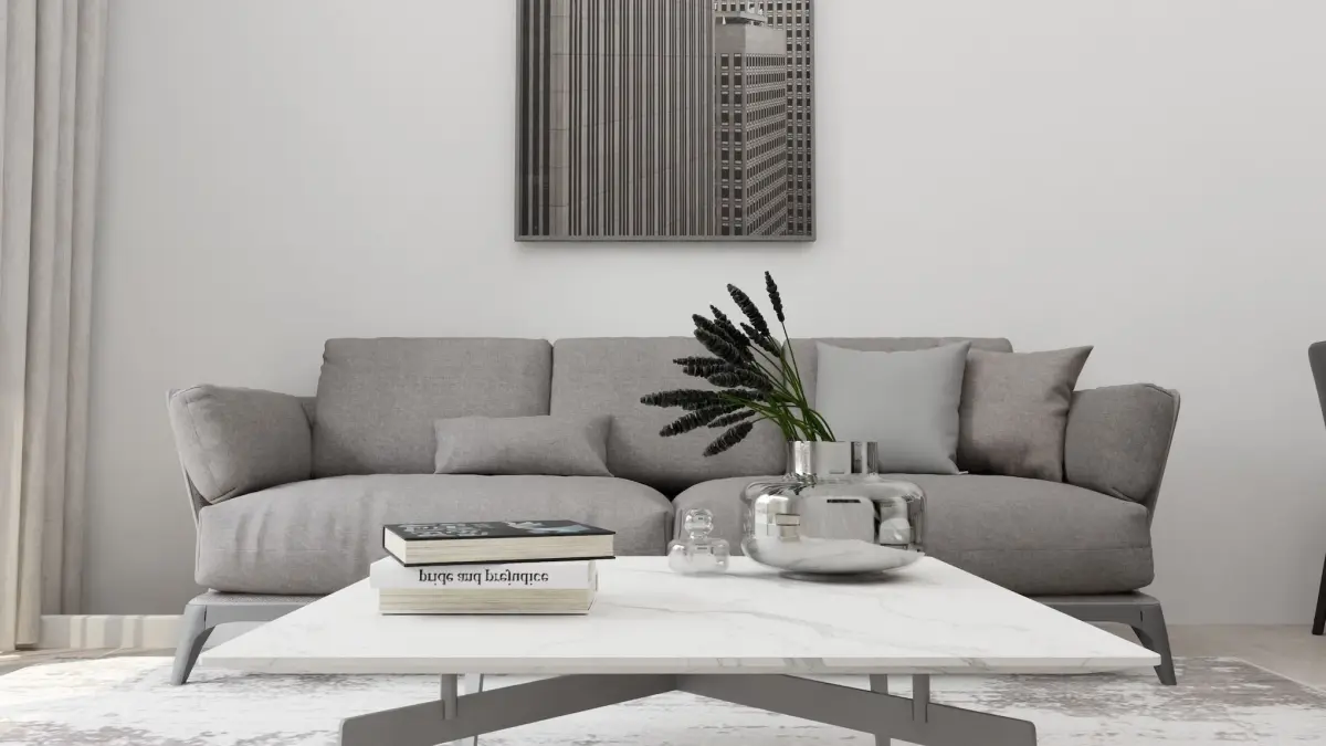 This is a clean and cozy interior design scene with studio light setup, ready to render. This package comes with textures and materials.