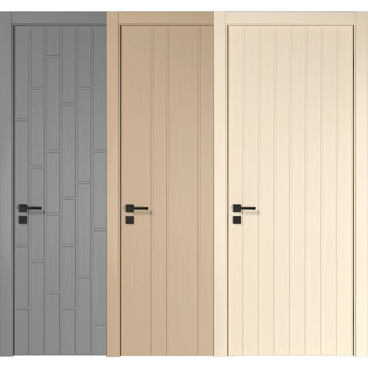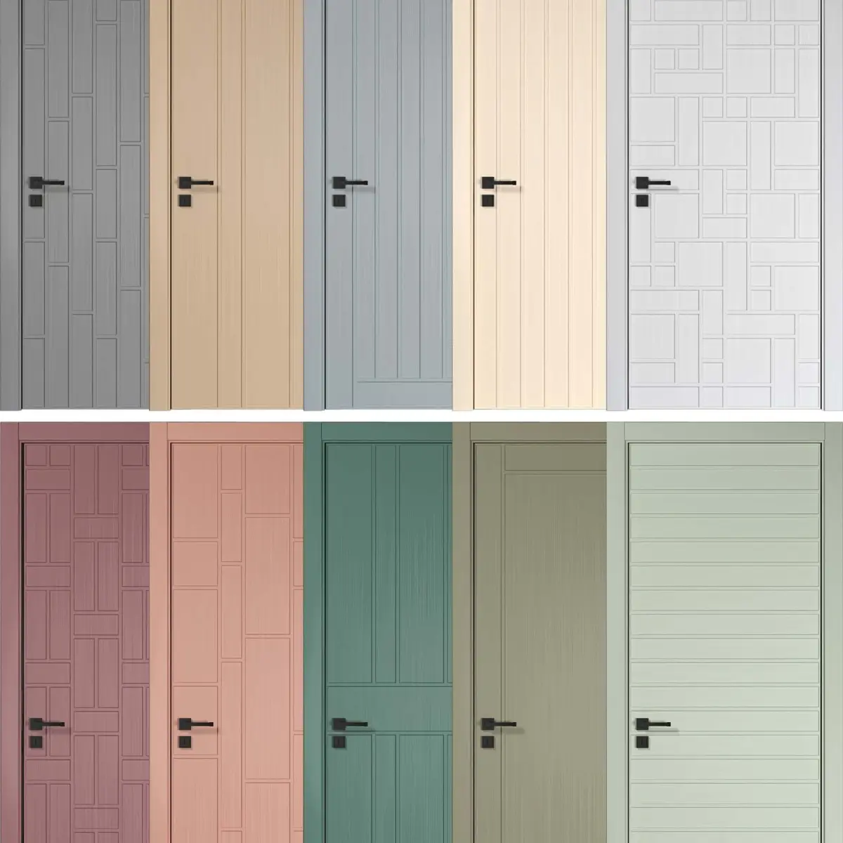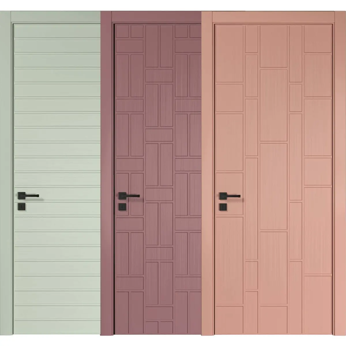 3D model interior door3Ds max 2015, corona, fbx10 diferent interior modern door10 color( white, green,brick,gray, pink, olive, cream, yellow, soft green, soft blue)with invisible hing in three state( close-open in 45 angle and 90)Black handle.Units: CMFrame dimension:L:98 W:15 H:218 CMDoor dimension:L:80 W:4.5 H:210 CMNice render for you.