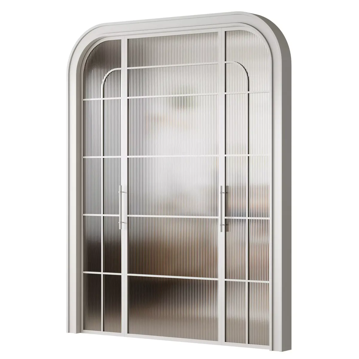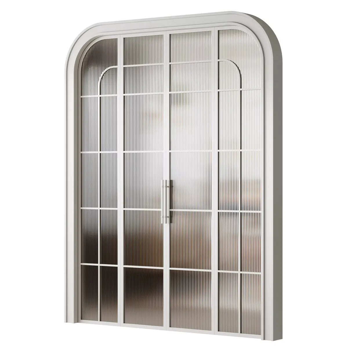 Name: Interior Door 15 2Type: modelFormat: 3Ds Max 2016Export: FBX, OBJRender: Corona 10Polys: 161056Verts: 161428Units: MillimetersDimension: 10024.8 x 150.0 x 2600.0Description: Stylish double sliding glass partition door with a black metal frame and ribbed glass panels. The arched top design and grid layout create a modern industrial look while allowing natural light to pass through. Perfect for separating living spaces, offices, or dining areas while maintaining an open and airy feel.Tags: interior door, sliding door, glass partition, black metal frame, ribbed glass, arched design, modern interior, loft style, industrial design, contemporary door, double door, large partition, glass wall, 3D model, corona render, photorealistic door, architectural visualization, modern home, office partition, room divider, elegant interior, minimal design, luxury interior