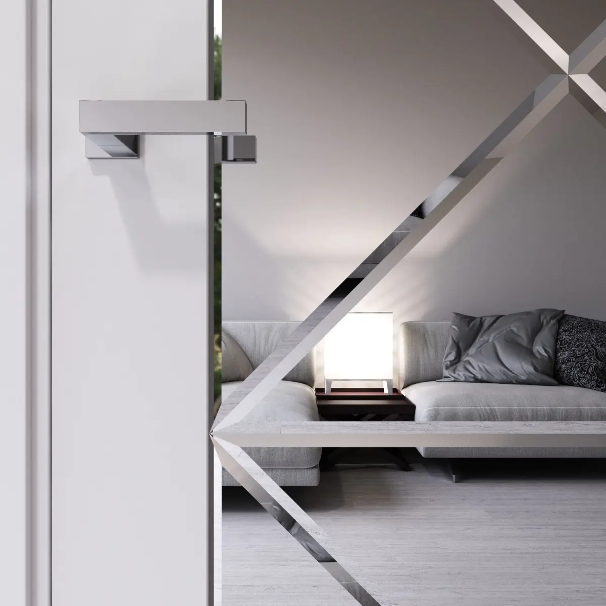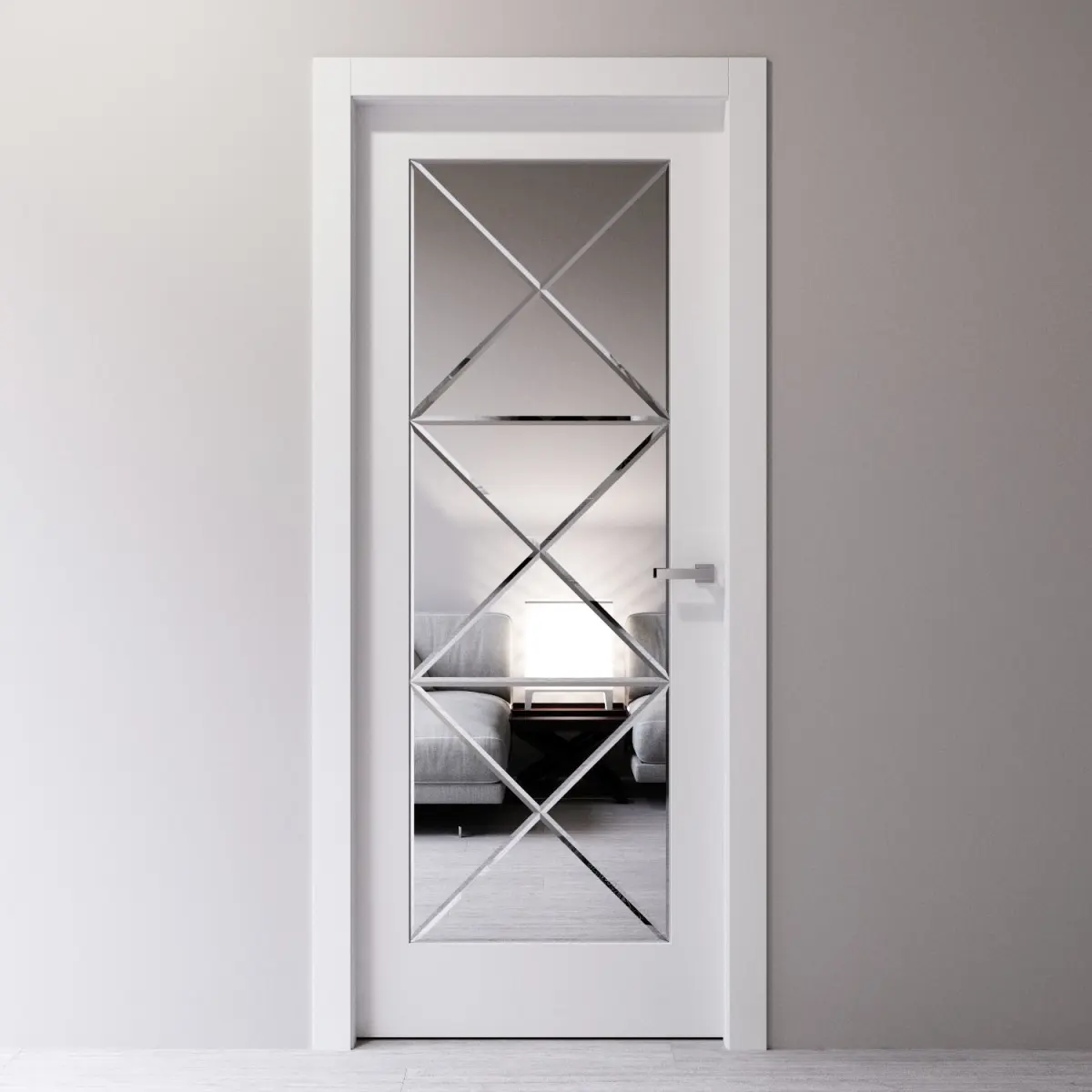 Interior door decorated with beveled mirror.The size of the door leaf is 2000 x 800 x 40 mm.Prepared for high resolution realistic renders. Previews were rendered in 3ds Max 2015, Corona renderer.Lighting, cameras and studio setups are not included.