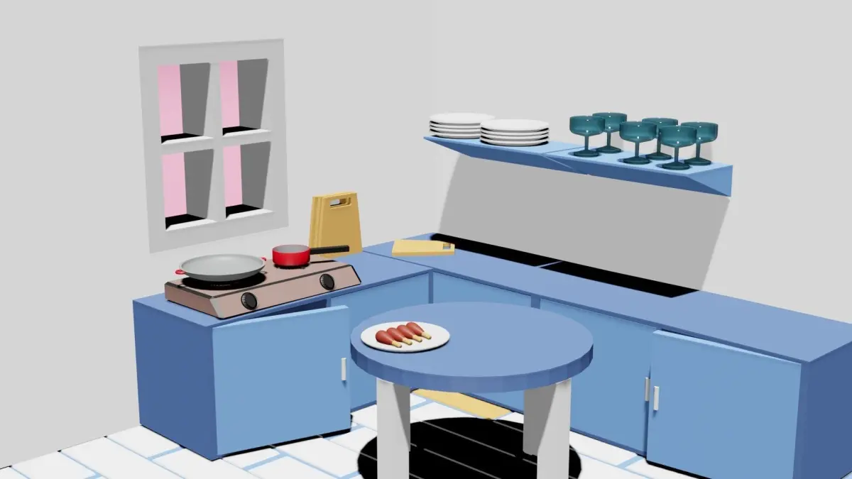 The kitchen room and its equipment are made with a low poly concept, perfect for complementing your games or movies