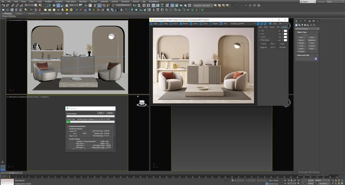 Here's a fully textured interior scene with natural light setup, ready to render with Corona .