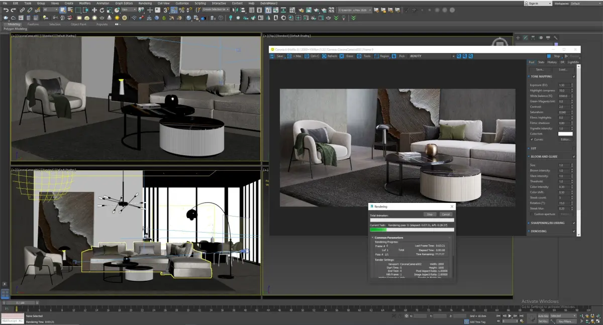 Here's a fully textured interior scene with natural light setup, ready to render with Corona .