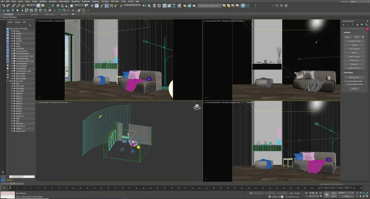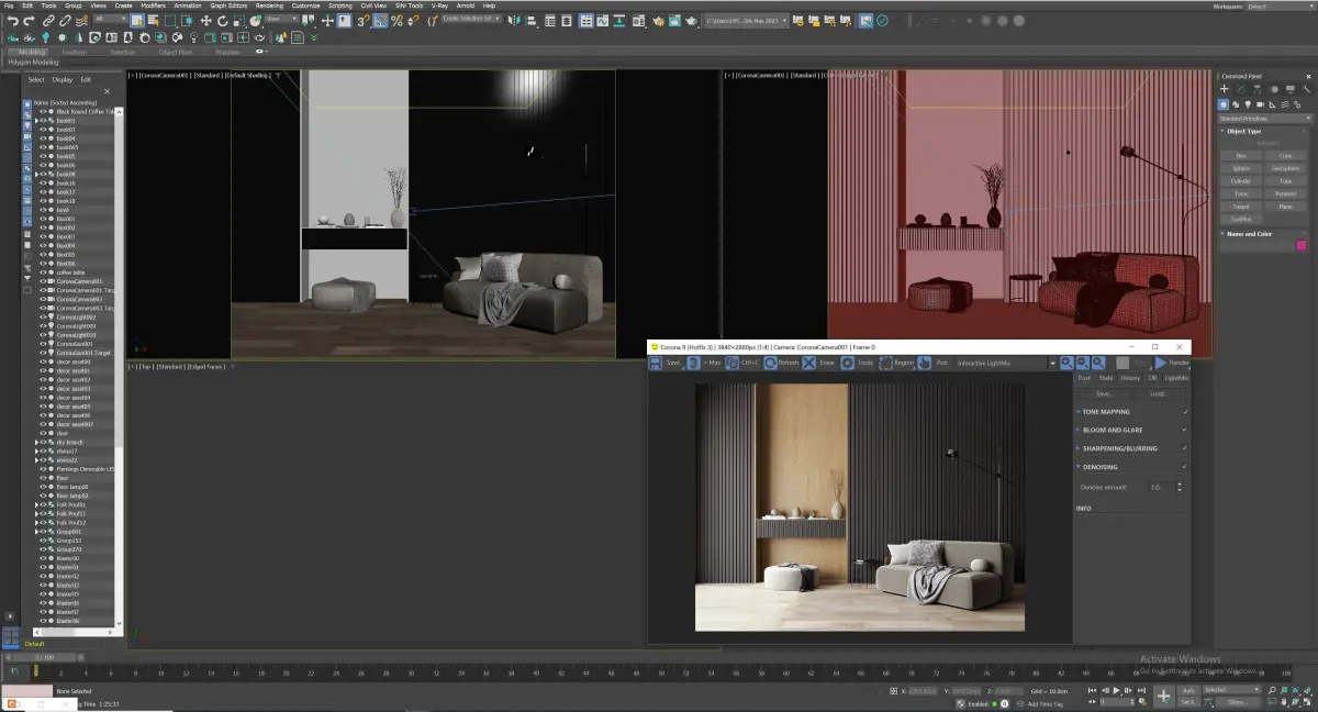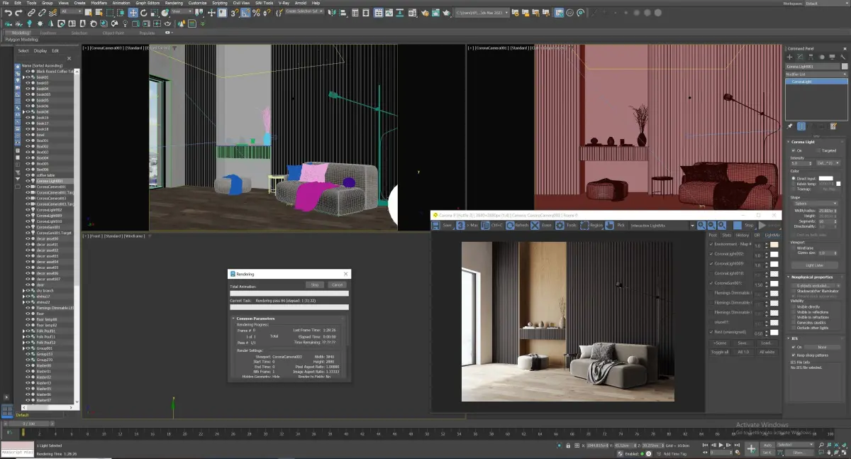 Here's a fully textured interior scene with natural light setup, ready to render with Corona .