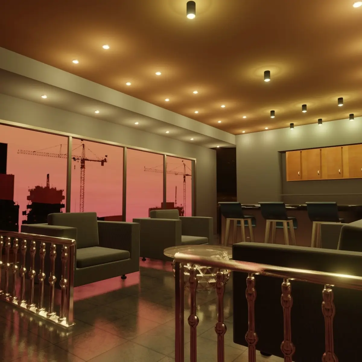 3d model reception interior. props: sofa set, table, chairs, glass windows etc. application:AR, VR, episodes.