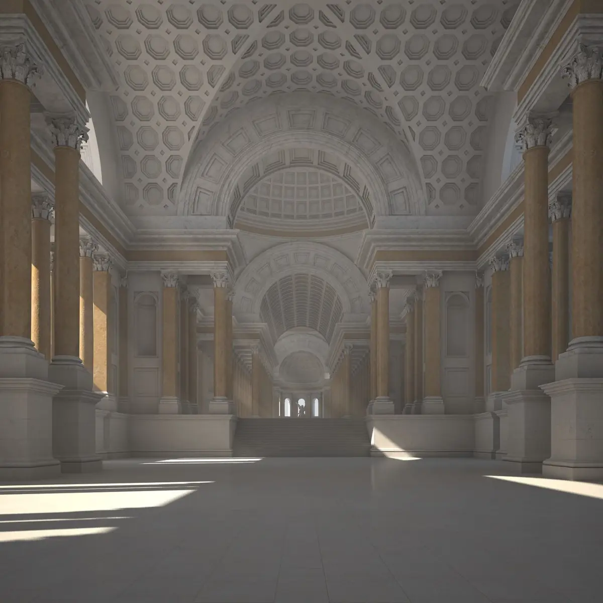 Highly detailed 3D model of an ancient building. Preview images have been rendered with Vray.