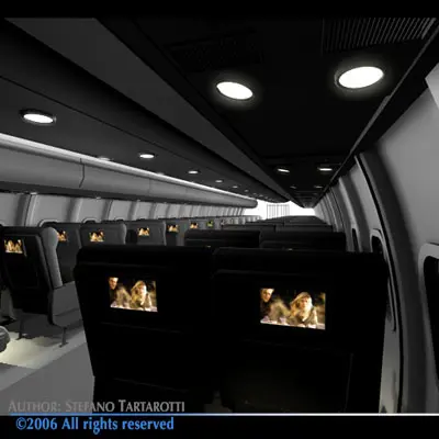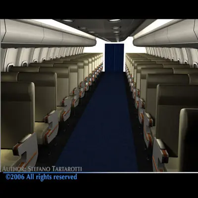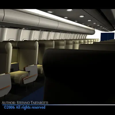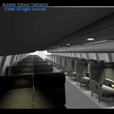 Only Cinema4d format has textures, materials and lights.The seats haven't belts.