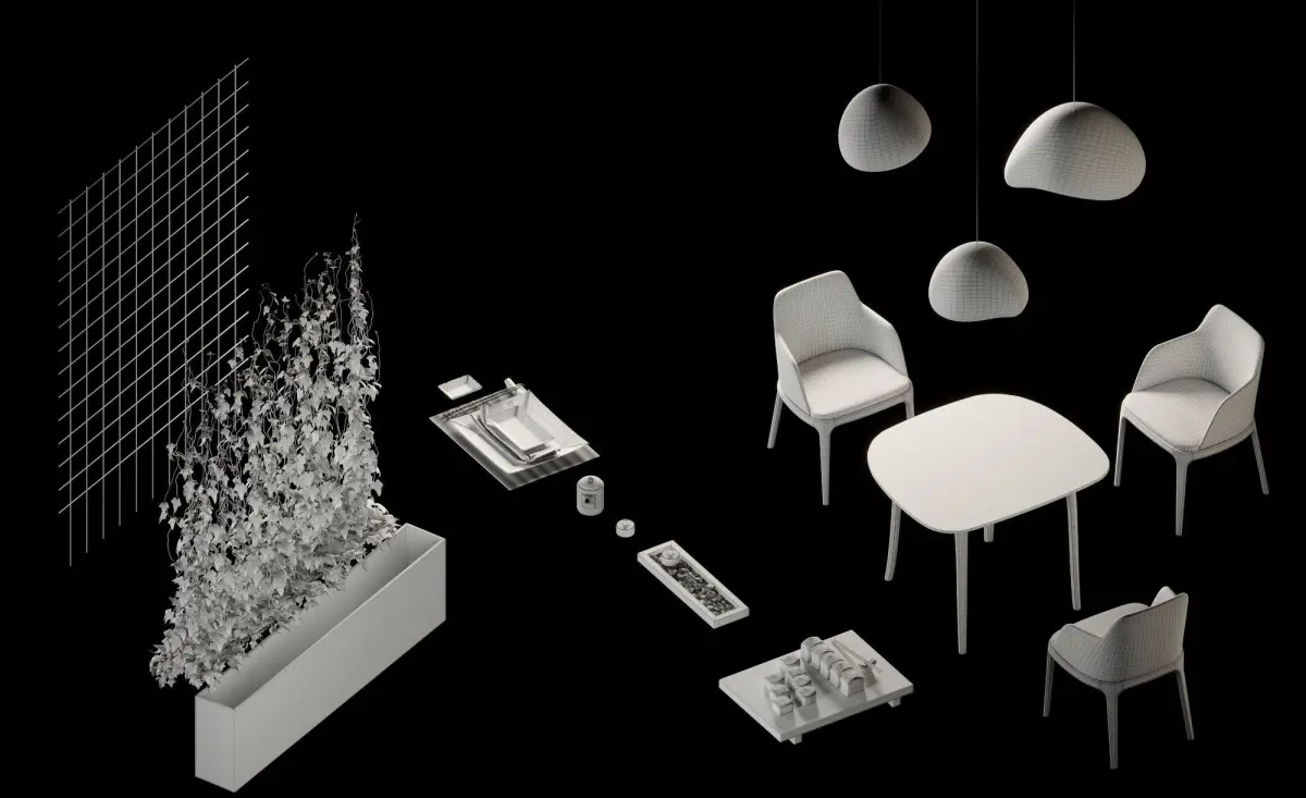 - Vegetation model (decorative ivy) with partition.