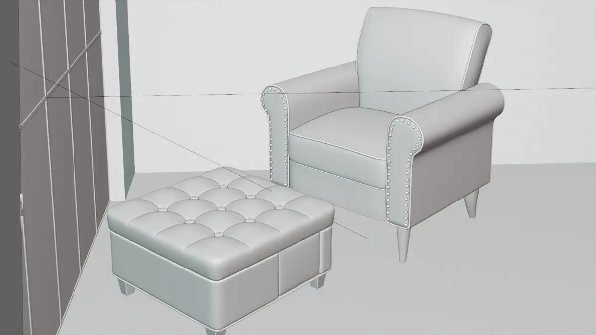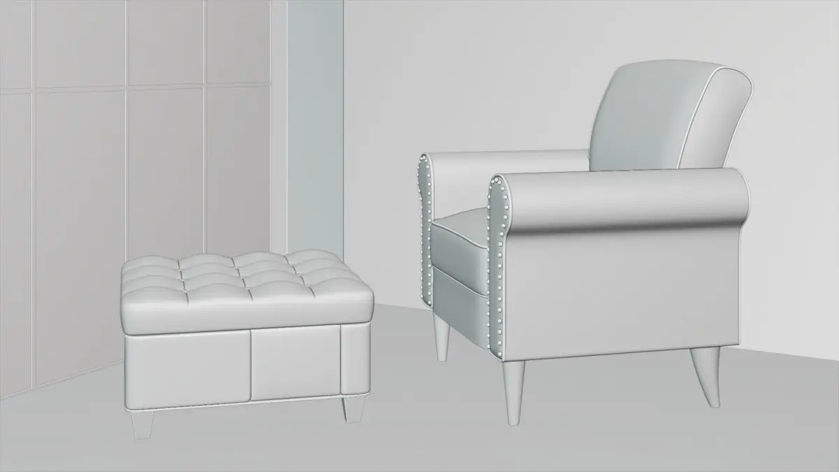 This scene was produced using the Blender software. Inside this indoor scene there are: 1 sunlight, 1 camera, wall, ceiling and floor. Wall height: 2.80m. - front wall width: 6m. - sidewall width: 4m. - wall depth: 20cm. There is an HDRI Map connected to the word tab within the stage. HDRI Map Res. : 4k - Chair and Puff Pbr have material. Chair and Puff Texture Res. 2048X2048px .png