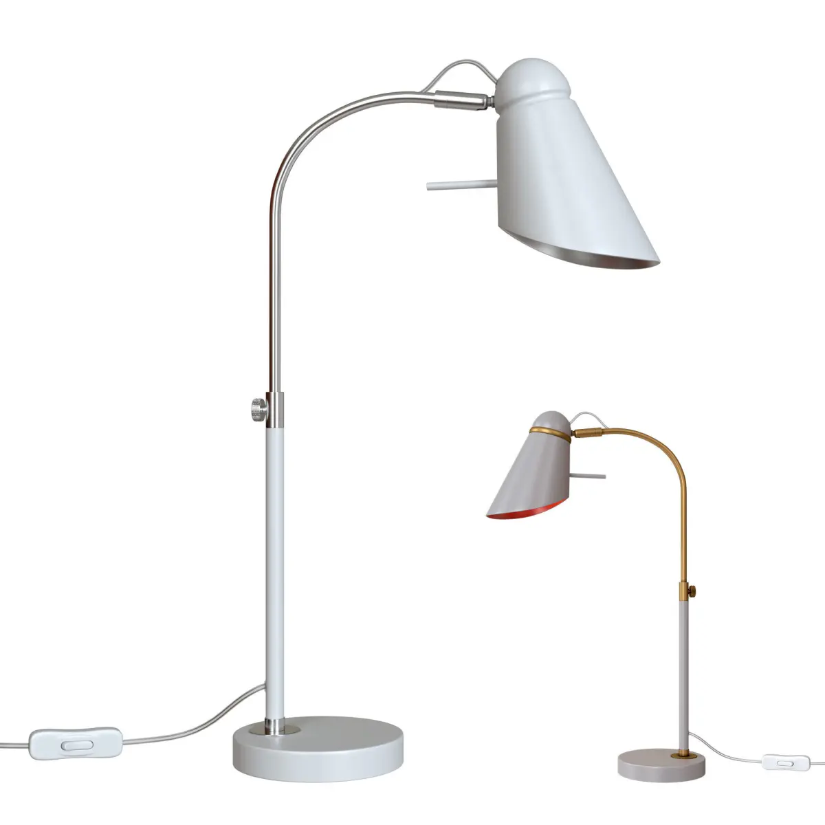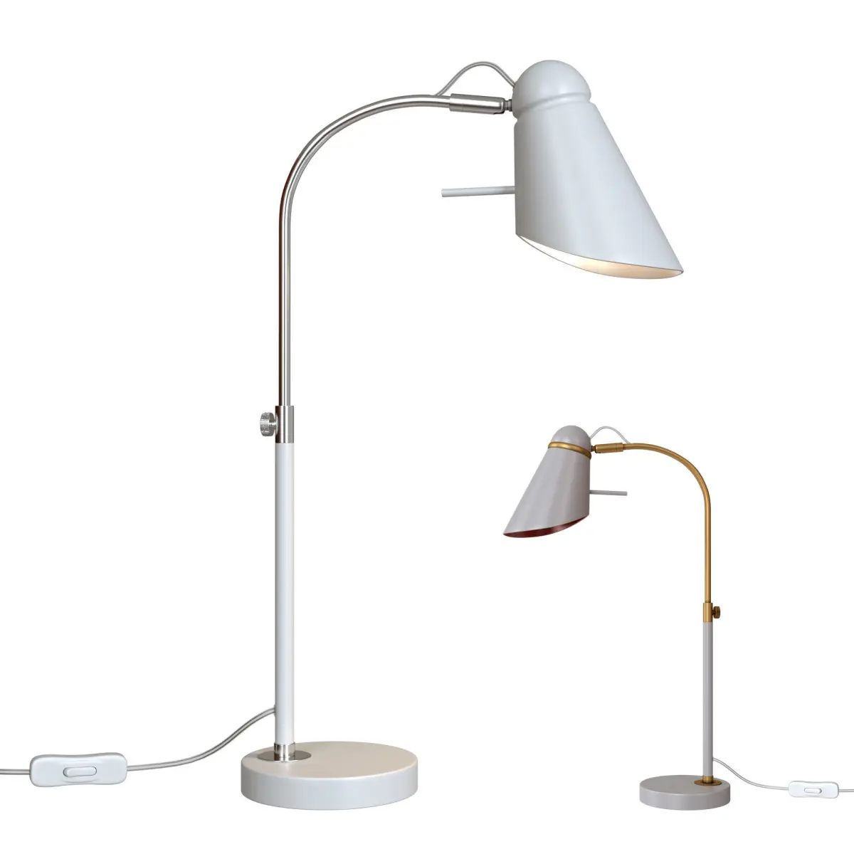 The 2666-1T and 2667-1T interior dimmable table lamps for schoolchildren belong to the Lovato series from the German brand Favorite, made in modern style and will look great on a table in a living room, bedroom, office. Base material - metal, model color - gray, white. The luminaire has 1 shade with E14 metal base. The lighting area is up to 2 sq. m. Model with a switch on the wire.