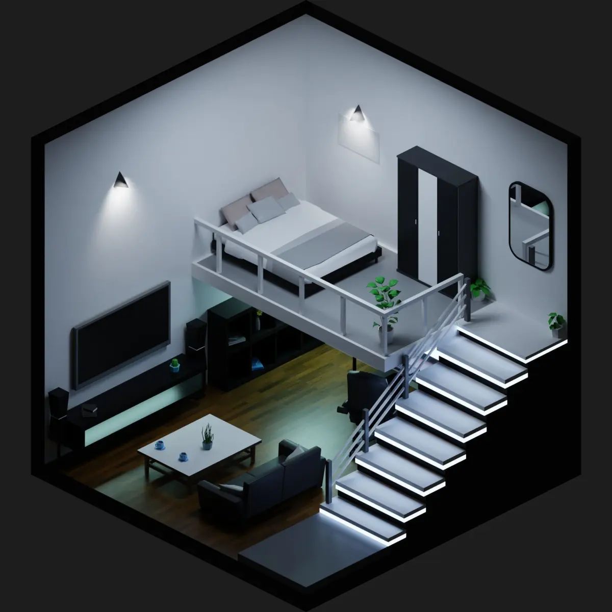 Interiors Pack-1 Low-poly 3D model Low-poly 3D model