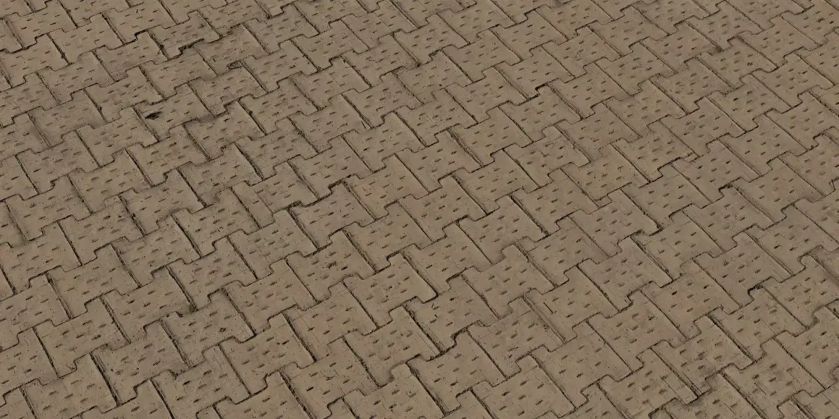 This Interlocking Zigzag Pavers PBR set features the classic S‑shaped/zigzag concrete modules laid in a running weave, with crisp chamfers, fine anti‑slip dimples, and sand‑filled joints. Subtle color variation, hairline chips, and occasional joint moss lend realism in close‑ups, while the modular pattern tiles cleanly across plazas, driveways, and walkways. Delivered as seamless 4K maps—BaseColor, Normal (OpenGL), Roughness, Height/Displacement, and Ambient Occlusion—calibrated for PBR in Blender, Unreal, Unity, 3ds Max, and Maya. Real‑world scale and clean tiling support large installs; increase Height to accent chamfers and dimple relief, or keep it light for performance. Roughness is tuned for a dry, matte slab; lower values simulate rain‑darkened pavers with mild sheen. Optimized PNG/TIFF textures preserve micro‑aggregate detail with efficient memory, and preview renders are included for rapid look‑dev.