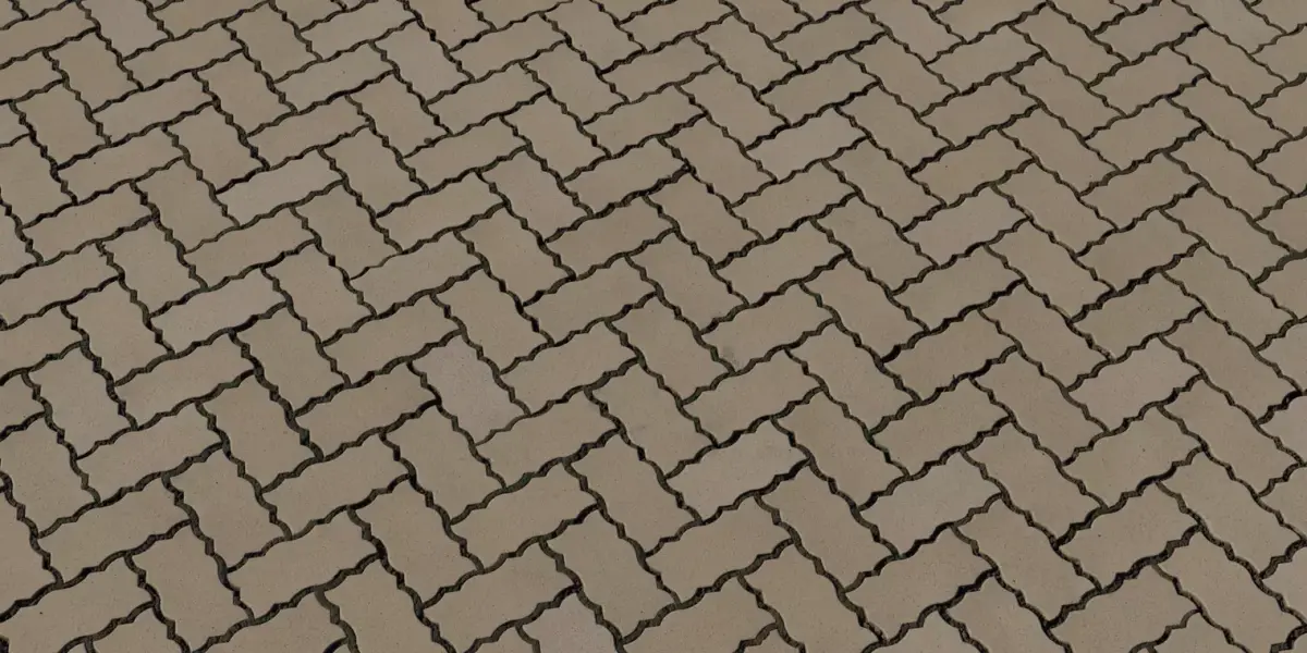 This seamless 4K PBR material recreates classic interlocking I‑block pavers laid in a herringbone pattern, ideal for driveways, plazas, and sidewalks where directional flow and load stability matter. The pack includes BaseColor, Normal, Roughness, Ambient Occlusion, and Height/Displacement maps authored to preserve beveled edges, fine sand‑filled joints, and subtle surface speckle so tiling stays invisible across large areas. Height and normal maps are tuned for pronounced joint relief; use parallax or true displacement to pop beveled contours and catch raking sunlight or nighttime glancing light realistically in Unreal, Unity, Blender, 3ds Max, and Maya. Roughness provides gentle variation for believable highlights on compacted concrete faces while keeping grout lines matte, producing natural specular breakup out of the box for both real‑time and offline renders. Scale matches common paver dimensions; adjust UVs to fit path widths while maintaining bond rhythm and consistent grout thickness for production‑ready archviz and games.