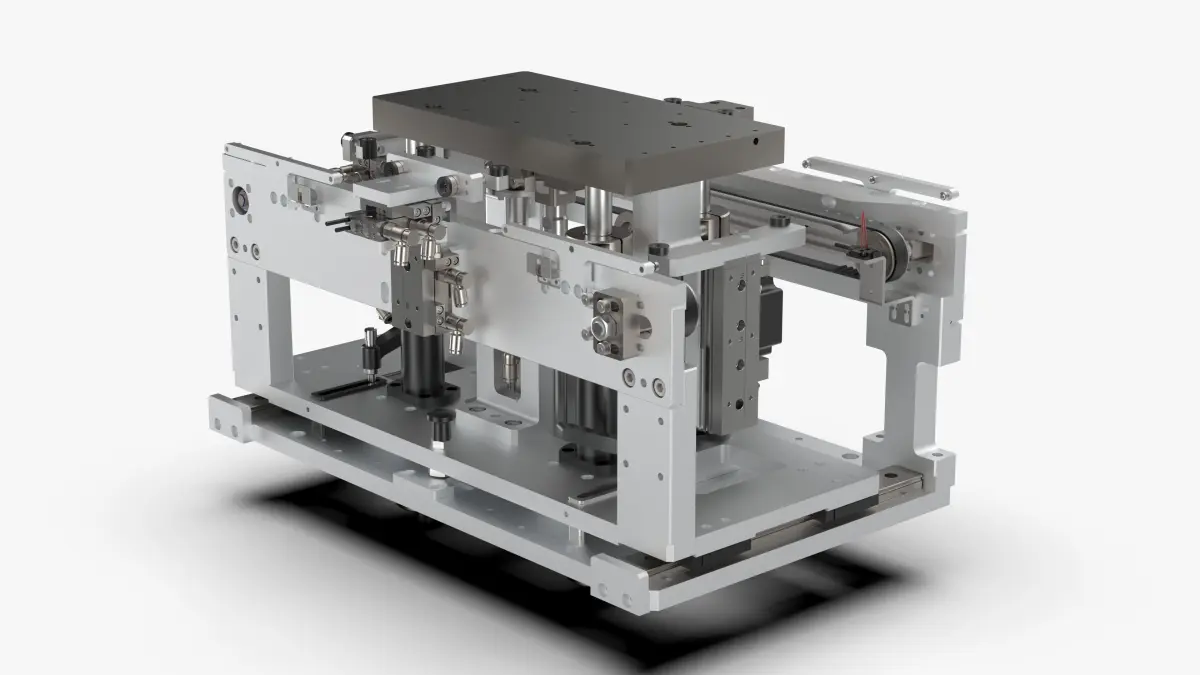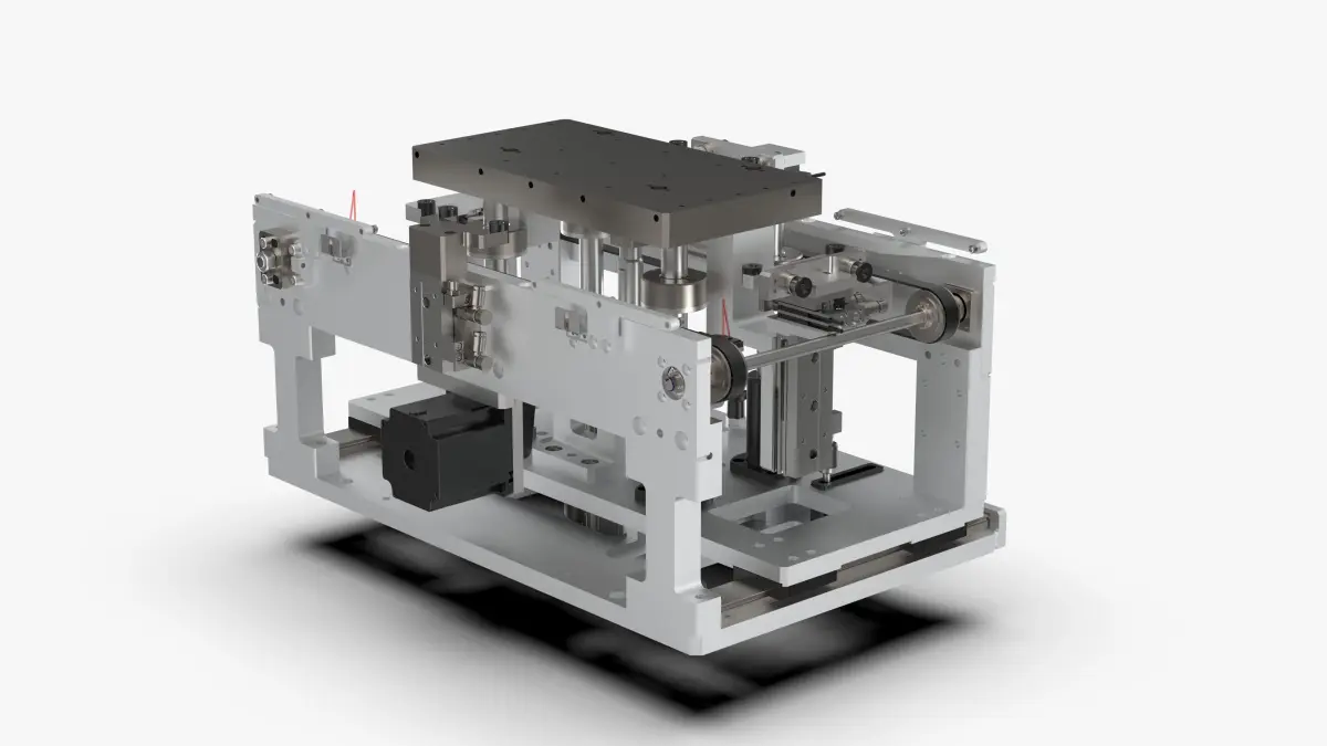 The jacking conveying equipment adopts cylinder jacking machine and speed regulating motor to convey, and the conveying method is synchronous belt. This device is lifted by a cylinder and guided by linear bearings to control the intermittent delivery of products, and is used to change the direction of product delivery or transfer. The DSSS-00 Elevator Conveyor drawing contains 3D drawings as well as engineering drawings, and features can be edited.