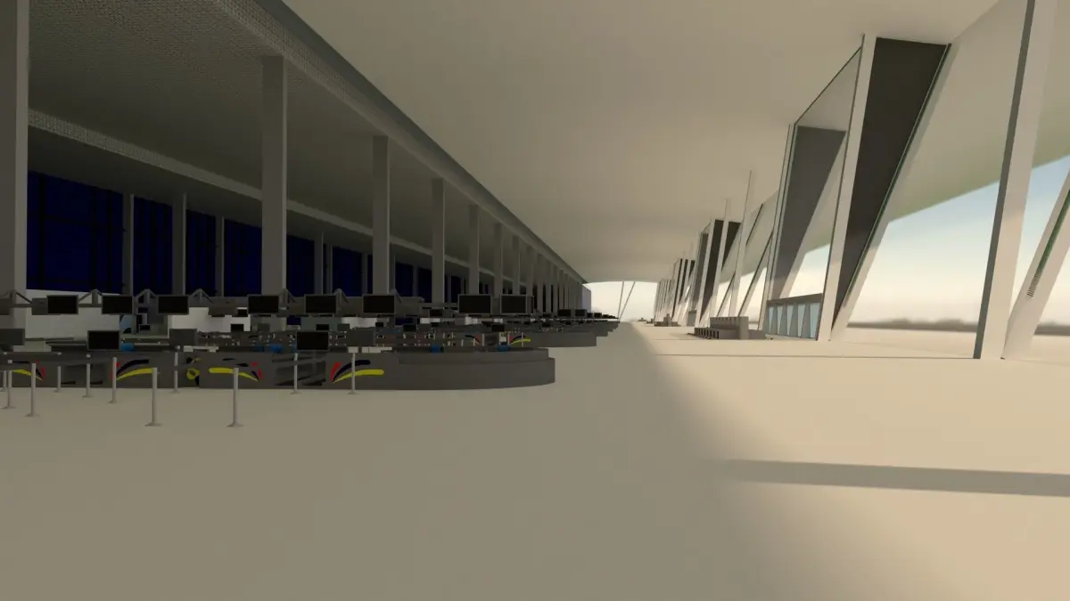 Plan for an International Airport that has 3500x60m runway, Aerobridges for A380, and 20 check in counters