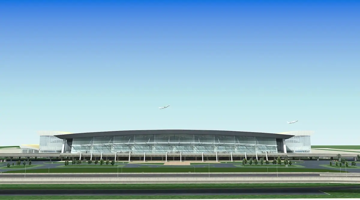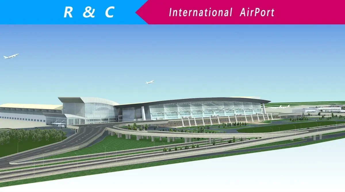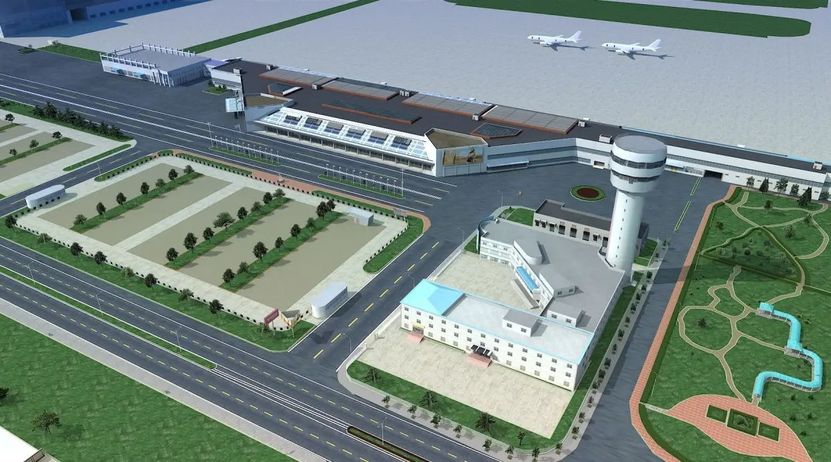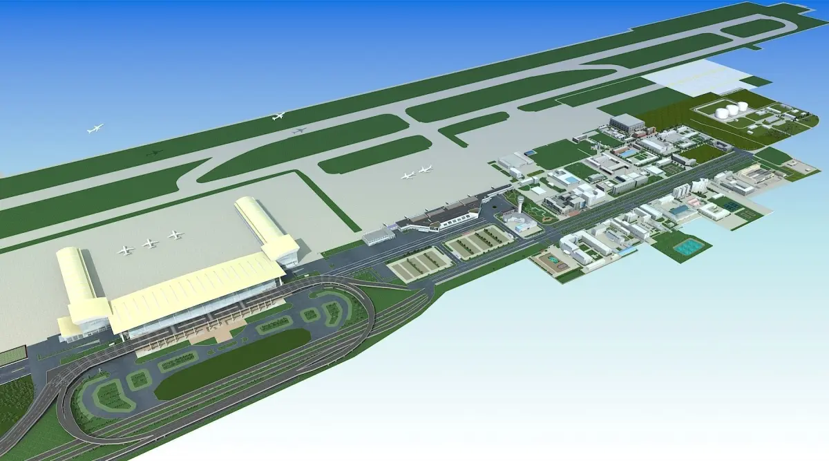 Model include a airport and some buildings around , extend road