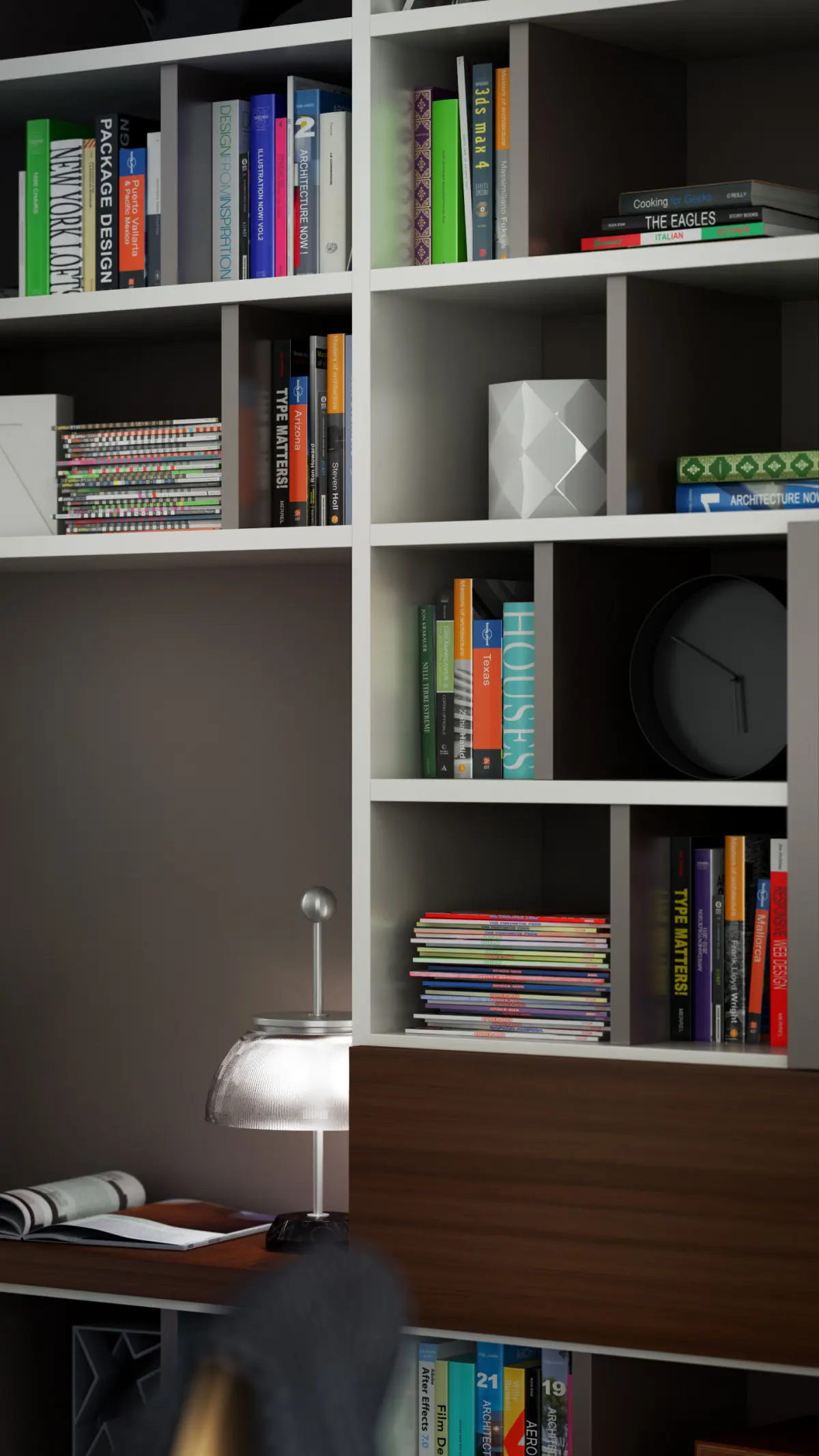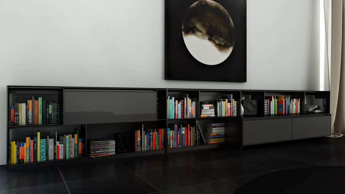 In the model there aren't scenes, bookcases and various objects.