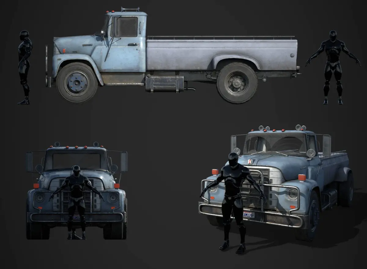 Game model.There are additional details ( the new bamper, additional loght, fuel tank and etc) + Trunk.Real dimensions. 70578 triss for whole model.4k texture for outside body and suspension ( 439 px/cm). 4k texture for the first person (inside) ( 956 px/cm). 2k texture for all wheels (414 px/cm). 1k texture for glasses (595px/cm). 1k map for additional details (the bamper, additional light, fuel tank and etc) (407 px/cm). 4k texture for Trunk (603 px/cm) There are primary baked textures ( Normal, AO, WSN, Curvature, ID, Position) and final textures ( Base Color, Roughness, Normal, Metallic, AO, Emissive). Maya, obj, fbx. Without LOD's. Non-triangulated meshes. Main renders in UE4.