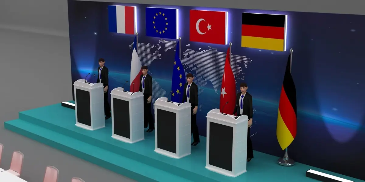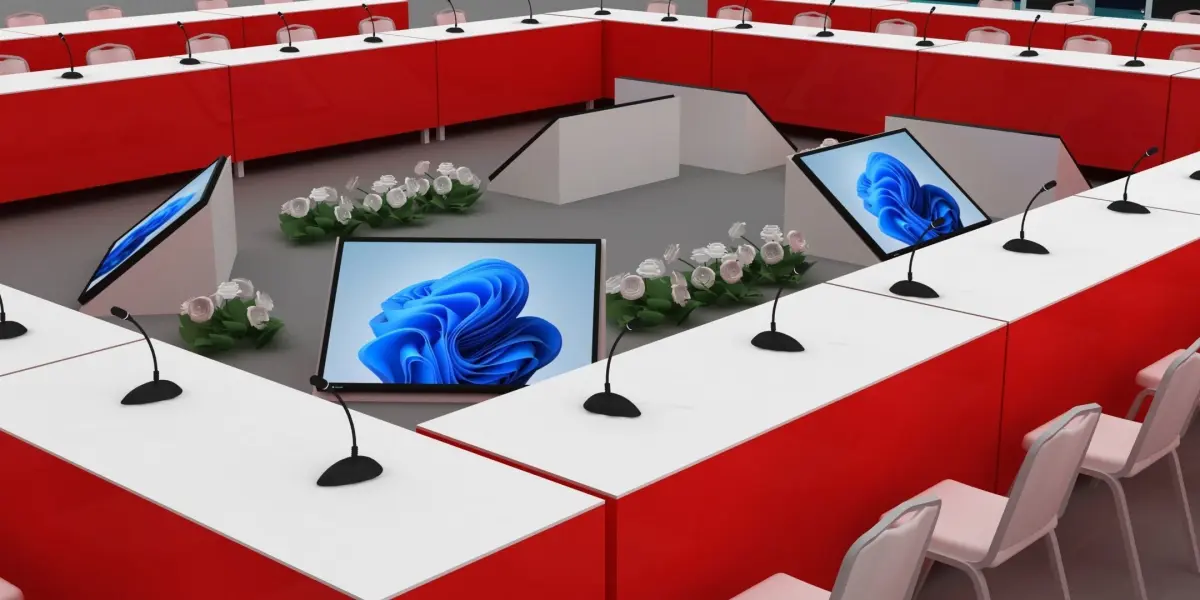 This is a 3d stage decoration and meeting setup.You can change the backgrounds. Dimensions are inches but you can change anyone.