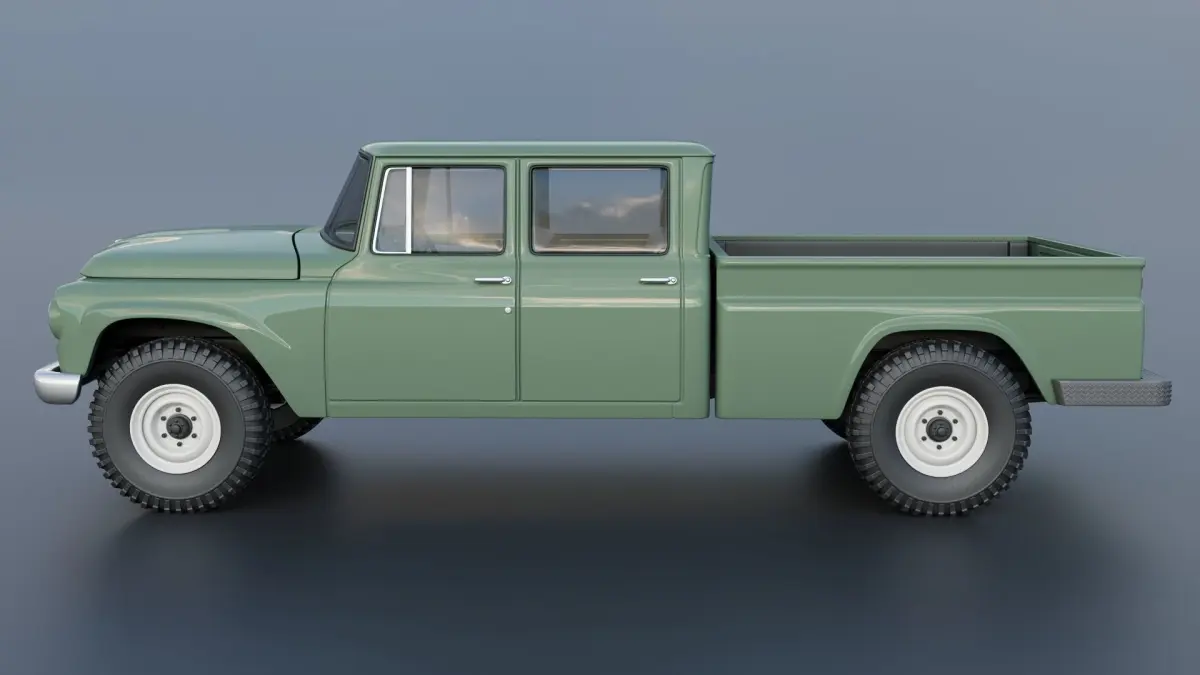 The model includes •Cab •Cab without hood •Hood •Grille •Cab divided into 4 parts •Box divided into 3 parts •Bumpers •Interior •Chassis •Engine •Wheels •Tires •Windows and glass for headlights and taillights
