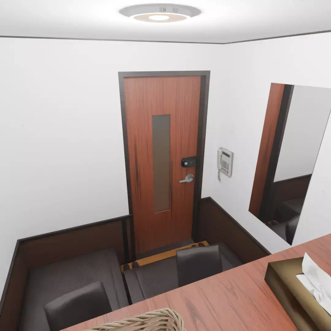 This product is a 3D model for Blender that recreates a pair room in an internet cafe.It includes a sofa, desk, PC monitor, lighting, flooring, and wall materials, allowing you to incorporate a space where two people can relax into your scene.