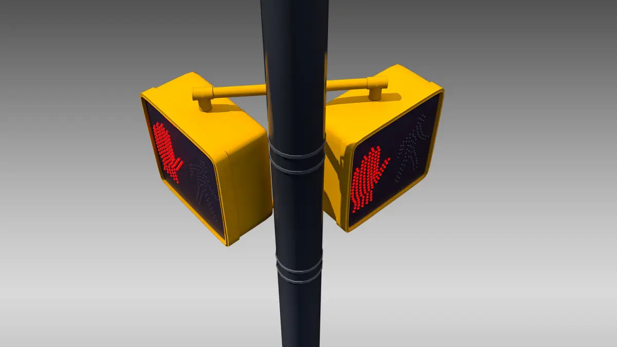 Highly detailed 3D model of an intersection pedestrian walk signal, modeled and rendered in Cinema 4D. The model was created using approximate real world dimensions.