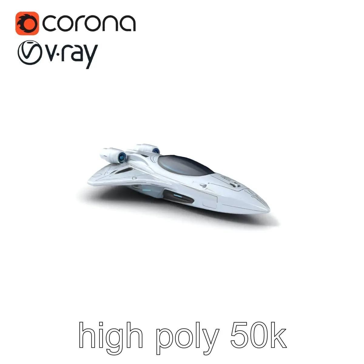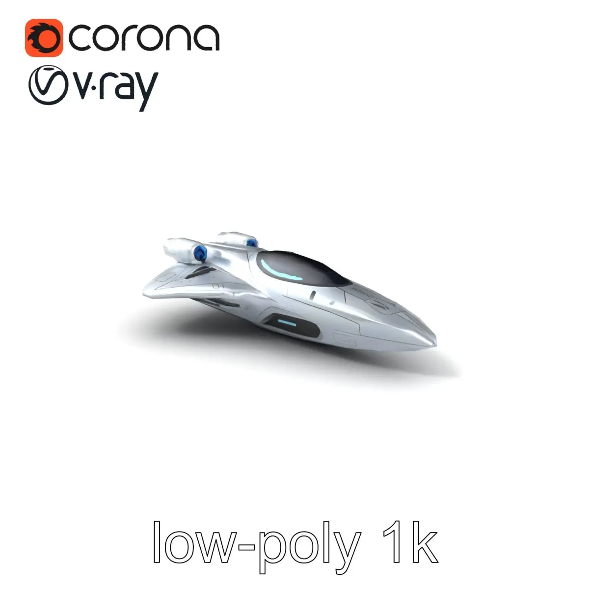 The spaceship design emphasizes speed and stability with smooth curves, aerodynamic surfaces, and advanced alloy materials. The illuminated control panels and twin plasma engines add futuristic detail to any scene. Textures include PBR, Diffuse, NormalMap, and reflection/roughness/metallic, suitable for modern rendering engines. All models accurately unwrapped with no overlapping UVs.