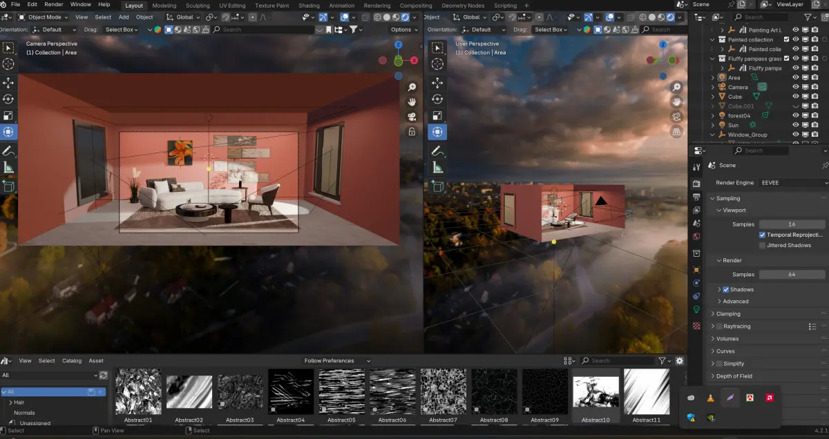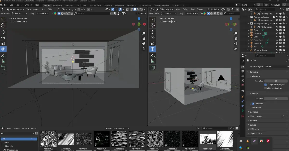 This high-quality 3D interior scene features a modern living room with a stylish couch set and aesthetic lighting. Rendered in Blender with realistic shadows and materials, this model is perfect for architectural visualization, game environments, or animation projects. The scene includes: Modular furniture (sofa, coffee table, decor items) HDRI lighting setup for natural shadows PBR textures for realism Fully customizable Blender file