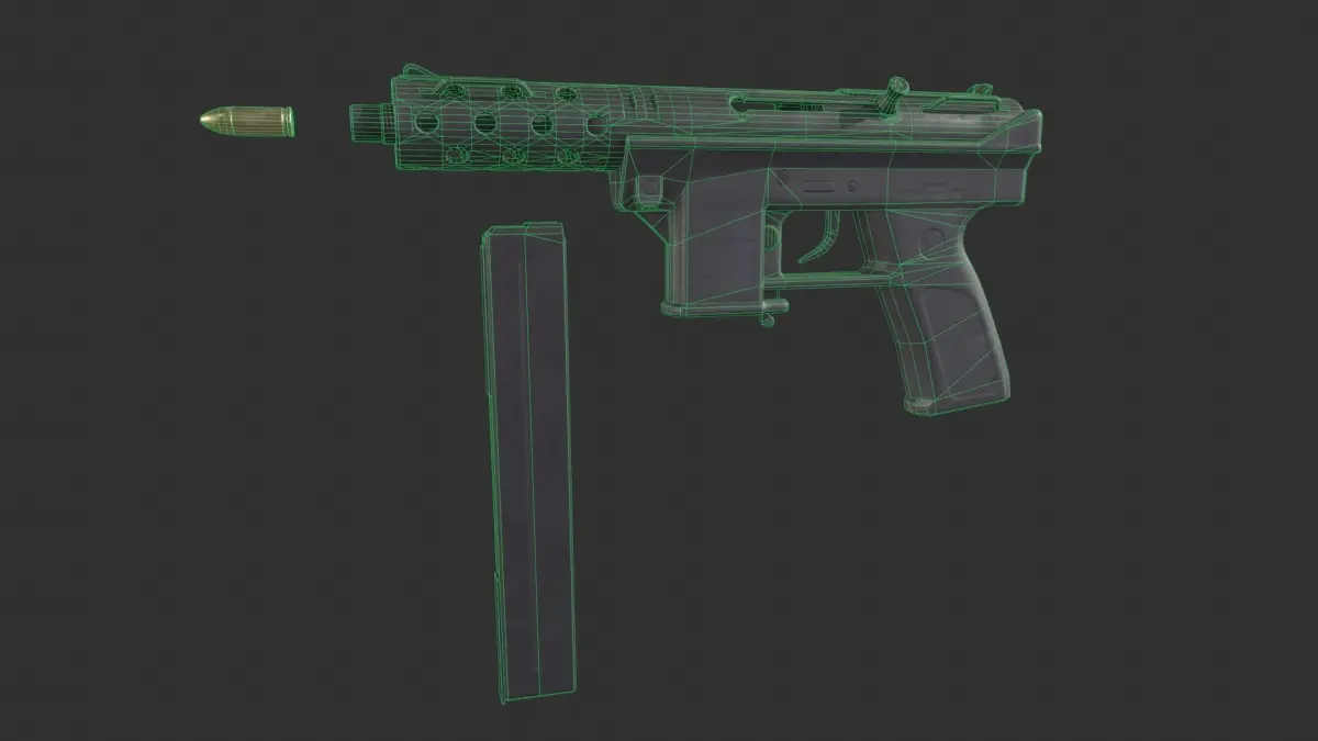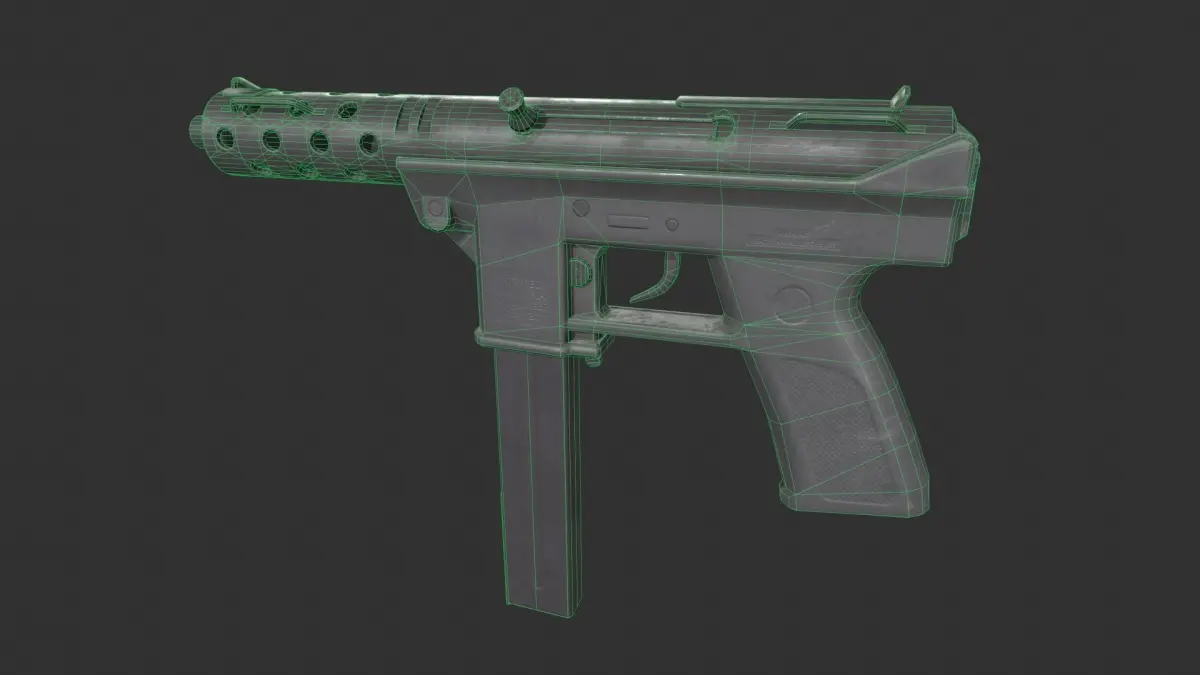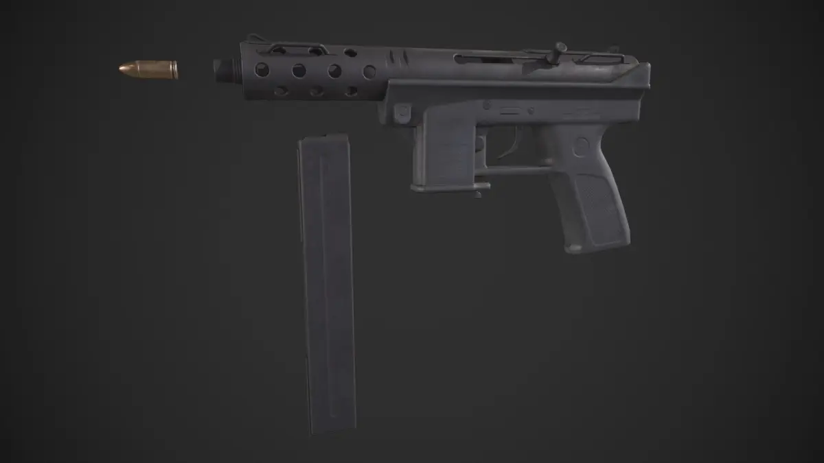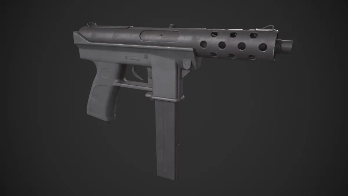 Game-ready Intratec TEC DC9 asset, with PBR textures included in the files. This has 4274 polys (7977 tris) and 4106 vertices. Note: changing the normal mesh settings in the native Maya file is not recommended.