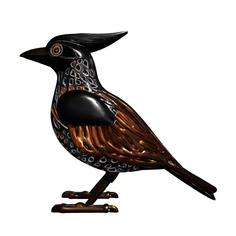 Discover this exquisite 3D model of a stylized bird sculpture, meticulously crafted with a captivating blend of metallic finishes. The design features a striking combination of brushed silver/steel and warm copper/bronze tones, creating a sophisticated and visually appealing aesthetic. Its intricate latticework and layered components give it a unique mechanical or steampunk-inspired charm, making it a truly distinctive decorative piece. This model is perfect for elevating the realism and artistic flair of your interior architectural visualizations, digital art compositions, or as an eye-catching focal point in virtual environments. It is also highly suitable for use as a static prop in augmented reality (AR) or virtual reality (VR) scenes, providing a touch of elegance and detail. Furthermore, with its robust detailing, this model is an excellent candidate for 3D printing, allowing for the creation of a stunning physical art object. The model boasts clean topology, high detail, and is UV unwrapped, ensuring ease of use and professional rendering results. It supports common formats like GLB, OBJ, STL (ideal for 3D printing), FBX, DAE, and USD, offering broad compatibility for various 3D software and engines. While optimized for static renderings and close-up views due to its high level of detail, it can also be adapted for real-time applications with appropriate optimization.