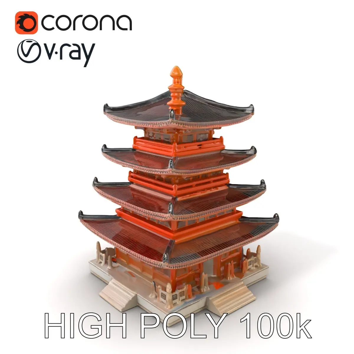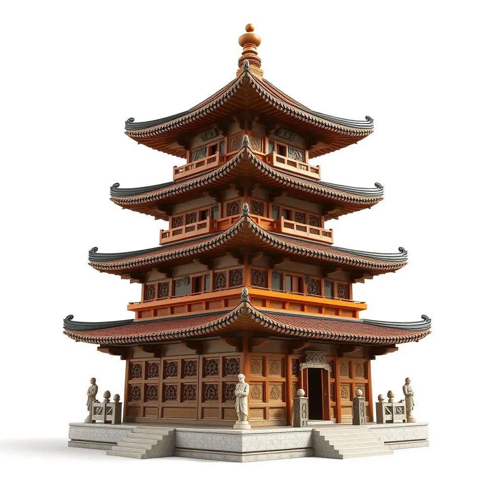 Each model has 3 levels of detail: low-poly, middle-poly, and high-poly, which allows for the use of this model in production rendering (such as 3ds Max, Maya, Cinema4D, Blender, Vray/Corona/Cycles, and all others), game engines (Unity and Unreal compatible), and interactive presentations, providing a choice of detail based on the LOD System principle. This pagoda model, with its intricate carvings, tiered structure, and curved roofs, is perfect for historical reconstructions, cultural visualizations, and video game settings requiring high realism. The model's textures are PBR, Diffuse, NormalMap, and reflection/roughness/metallic, which are suitable for any modern rendering engine. All models are accurately unwrapped and have no overlapping UV. Additionally, all textures are 4096*4096 in size. If you liked this model, please like and leave a comment.