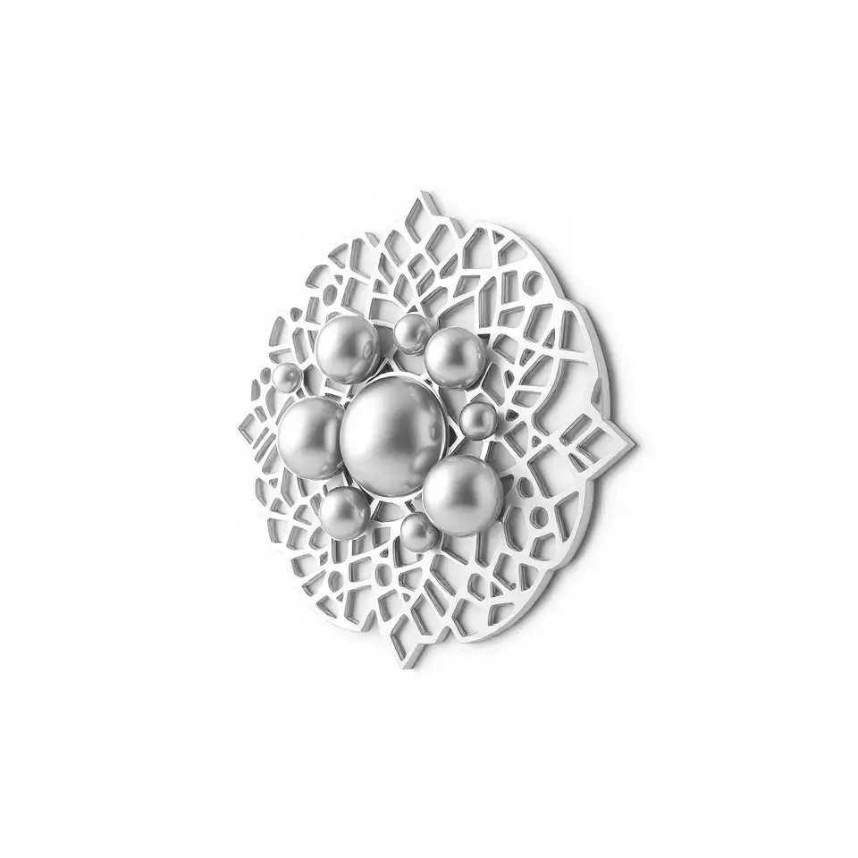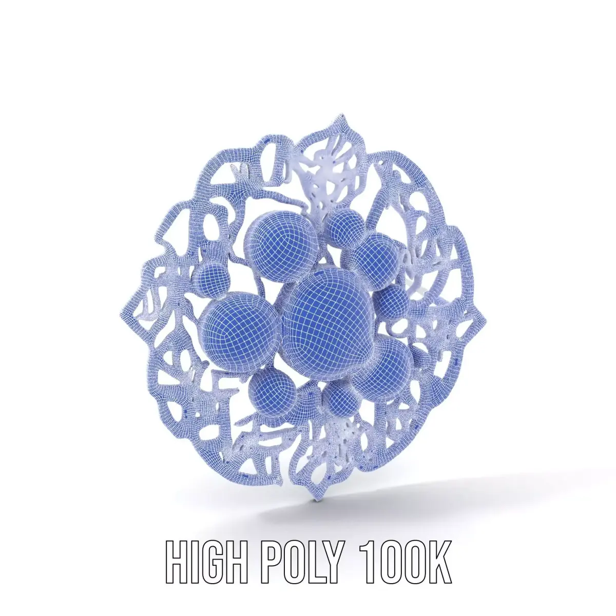 This intricate silver medallion model is perfect for adding a touch of elegance to any scene or project. The detailed lattice pattern and smooth spheres make it suitable for use in jewelry design renderings or decorative elements in architectural visualizations.