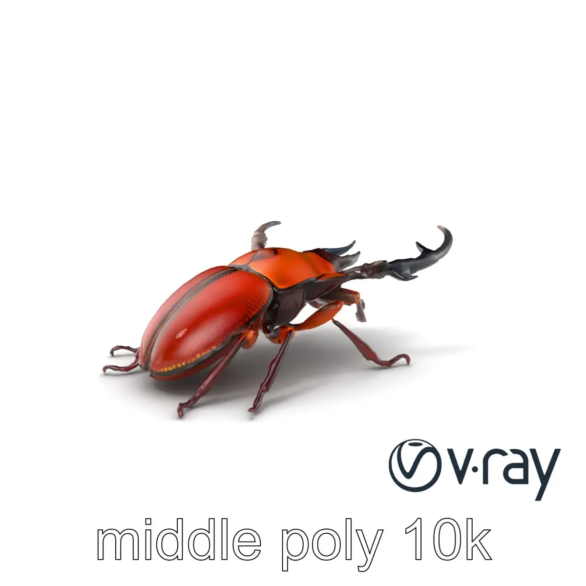 The model features a realistic stag beetle with prominent mandibles and a robust exoskeleton, ideal for nature documentaries, educational tools, and realistic creature animations. The model's textures are PBR, Diffuse, NormalMap, and Reflection/Roughness/Metallic, which are suitable for any modern rendering engine. All models are accurately unwrapped and have no overlapping UV. All textures are 4096x4096 in size.