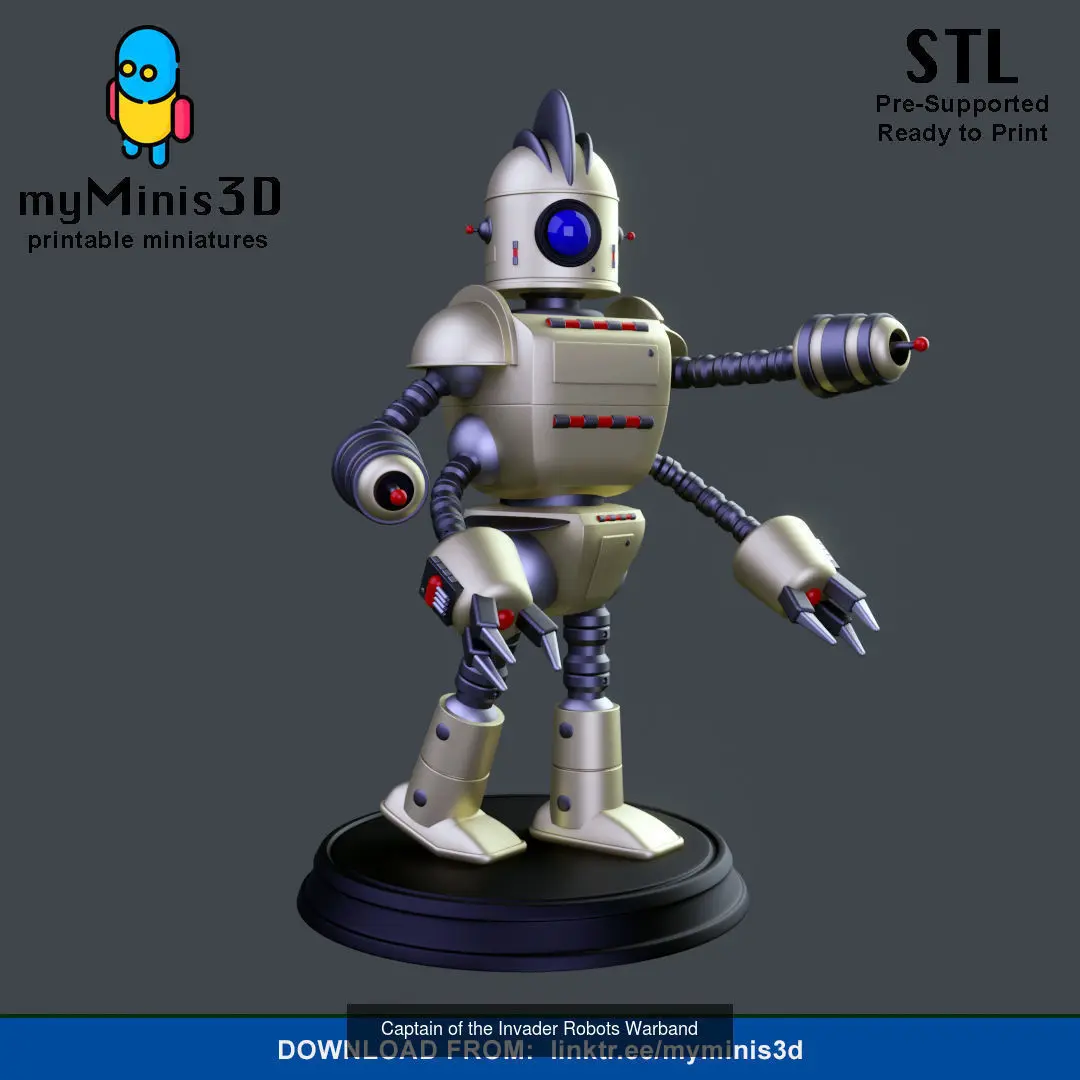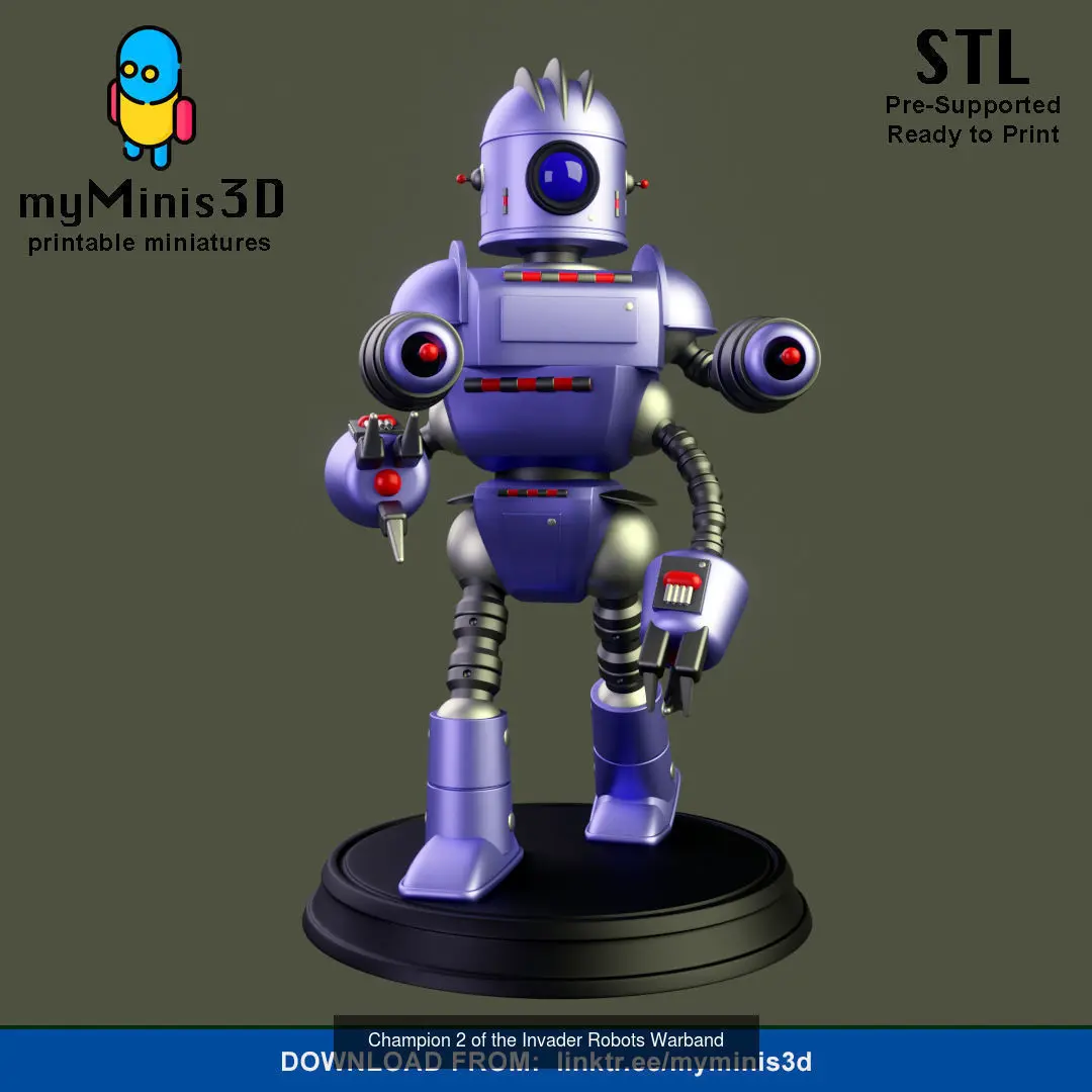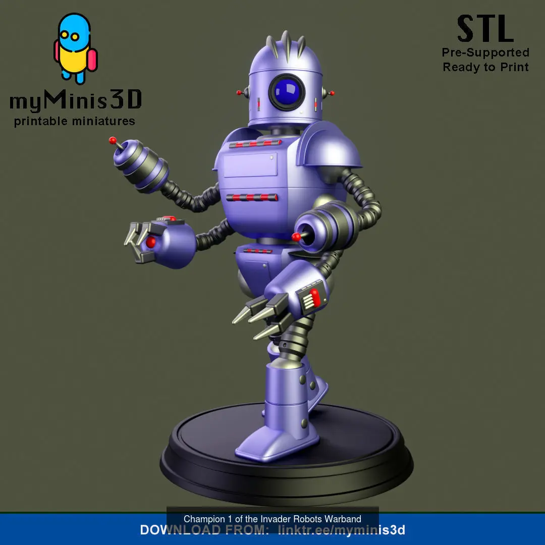 Invader Robots Warband is a collection of robots with a retro futuristic style (Pulp Scifi) to show them off in your board games or wargames.8 unique models including: 1 captain, 2 champions, 3 warriors and 2 drones. Let your imagination run wild and give them a context or a story to kick some butt.Soon more units... support usIf you collect Robot figures, these cannot be missing from your collection.