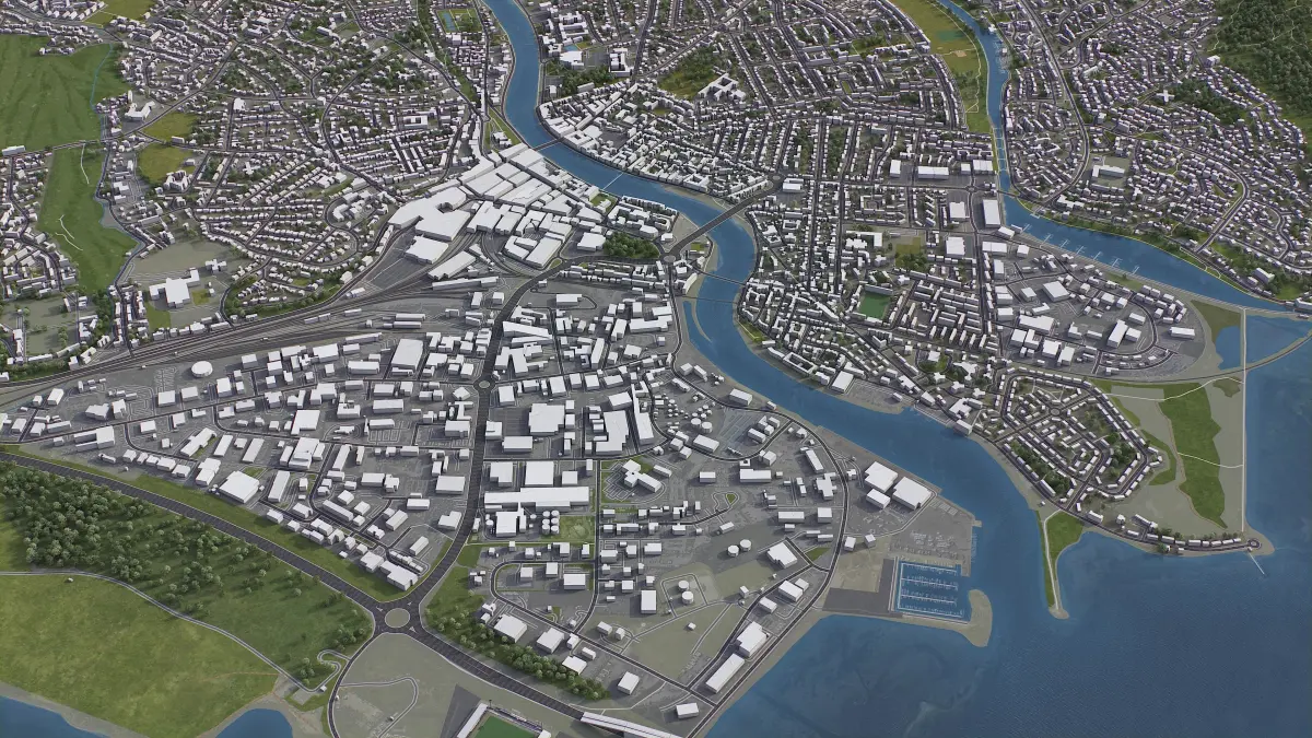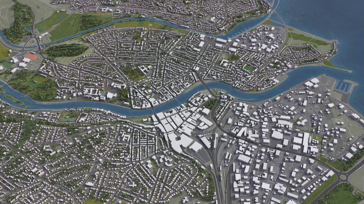 - Procedural textures assigned to all buildings