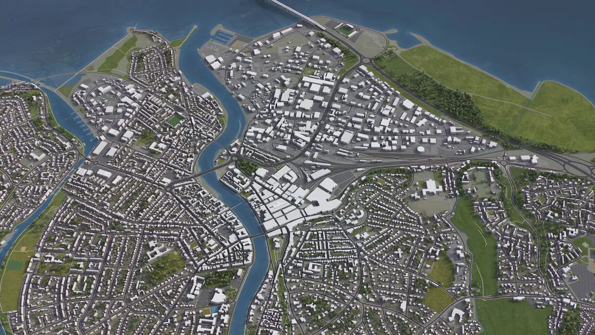 - Buildings and roads placed on the optimized terrain