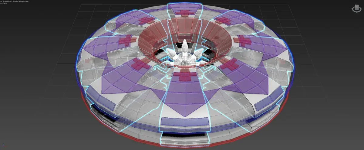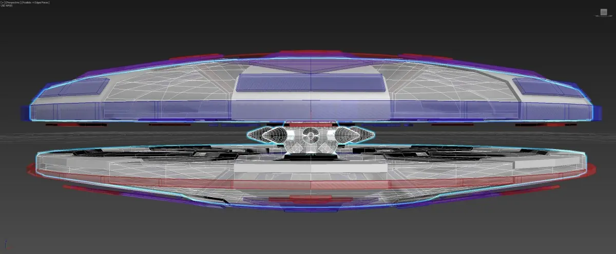 Central Ionostar all coiled and able to switch charges and direction of currents.several modes, pushing out ions equally, outward and over and under a 360 degree wing design, made up of two different hemispheres.
