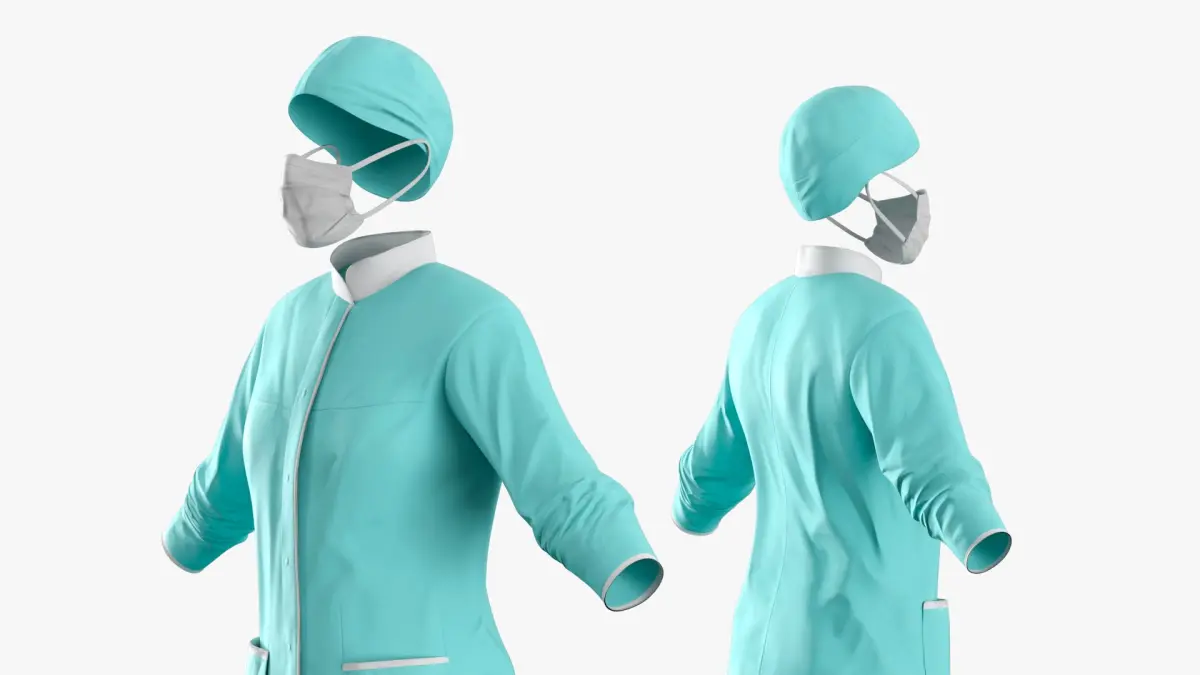 Invisible Medical Coat Outfit with Mask Cap Mint is a 3d model of medical apparel, essential for healthcare environments, designed to maintain sterile conditions and ensure safety.