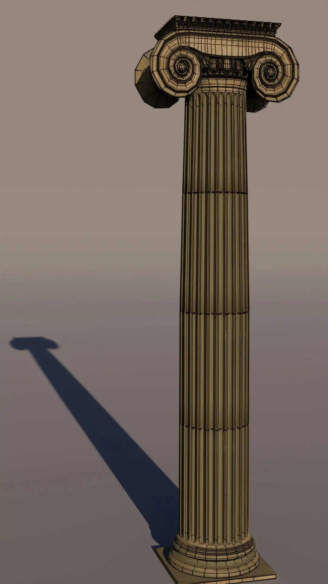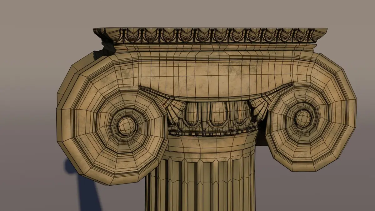 Mid-poly ionic column made poly to poly. It's ready to subdivide and also can be un-subdivided to reduce polygons count. The texture was made with Substance Painter.