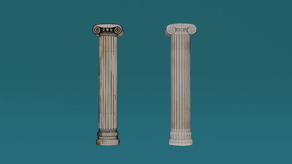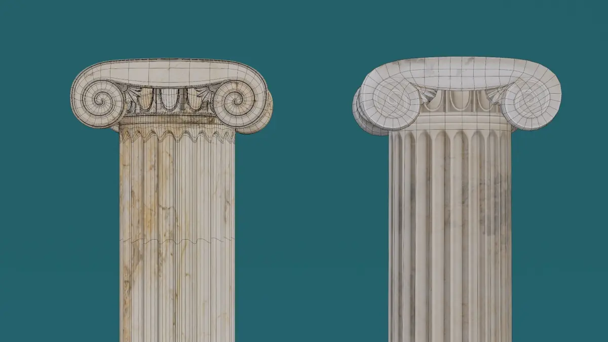 Nothing more characteristic of the Greek period than its magnificent columns. With the purchase of these models you will get a Greek column of the Ionic order, approximately from the 6th century BC. You will find two versions: a high polygon version (39,974 polygons) and a low polygon version (Low poly 2,062 polygons) so you can choose what best suits your needs. In addition to that, you will have two different textures for you to choose at ease.Note: You will get the model in .obj, .fbx and .blend formats, as well as the corresponding textures. However, the original file is .blend, so be careful when setting up materials in other software. Most 3D software recognizes model materials without any problems, however, setting the materials in another software different from Blender is up to you.Objects: 2vertices: 21,981edges: 42,857Faces: 20,914Tris: 42,036