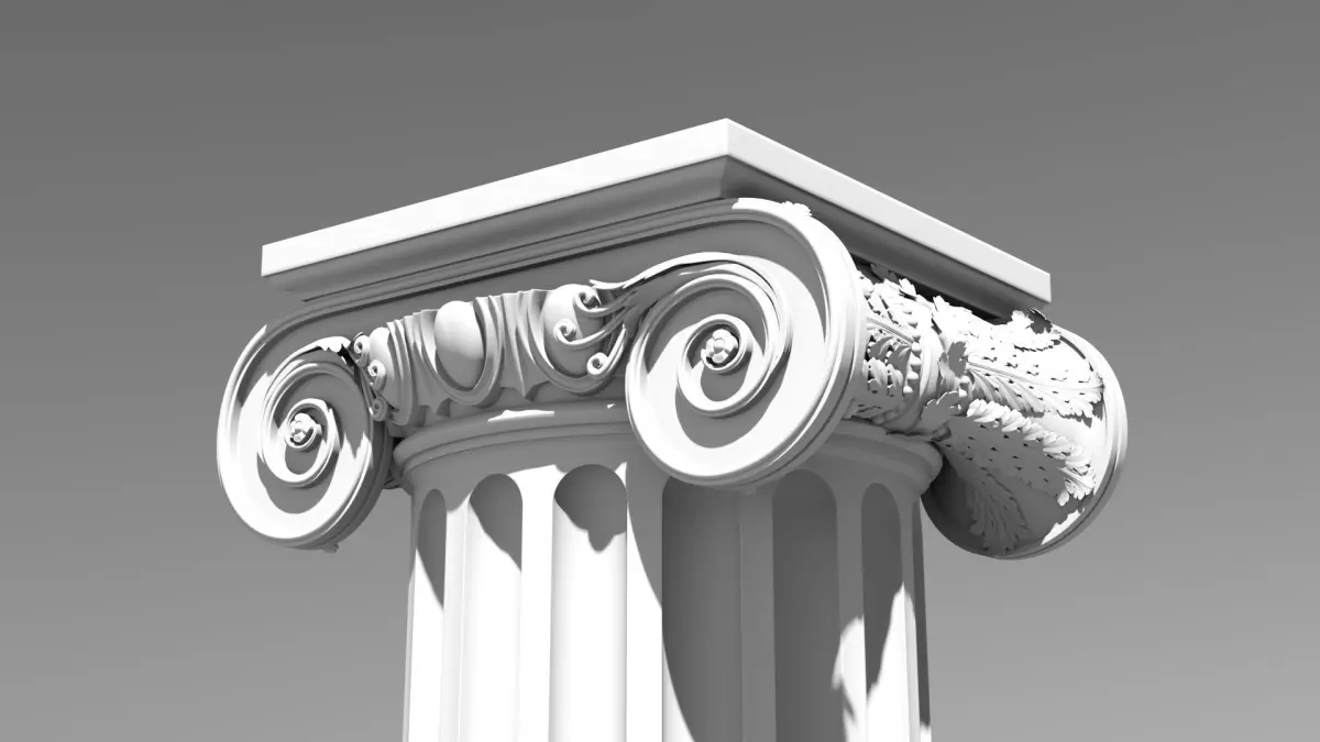 High detailed 3D model of an entire column, with base and capital.Reconstruction based on the exact measure and style of the architectonic Ionic order.