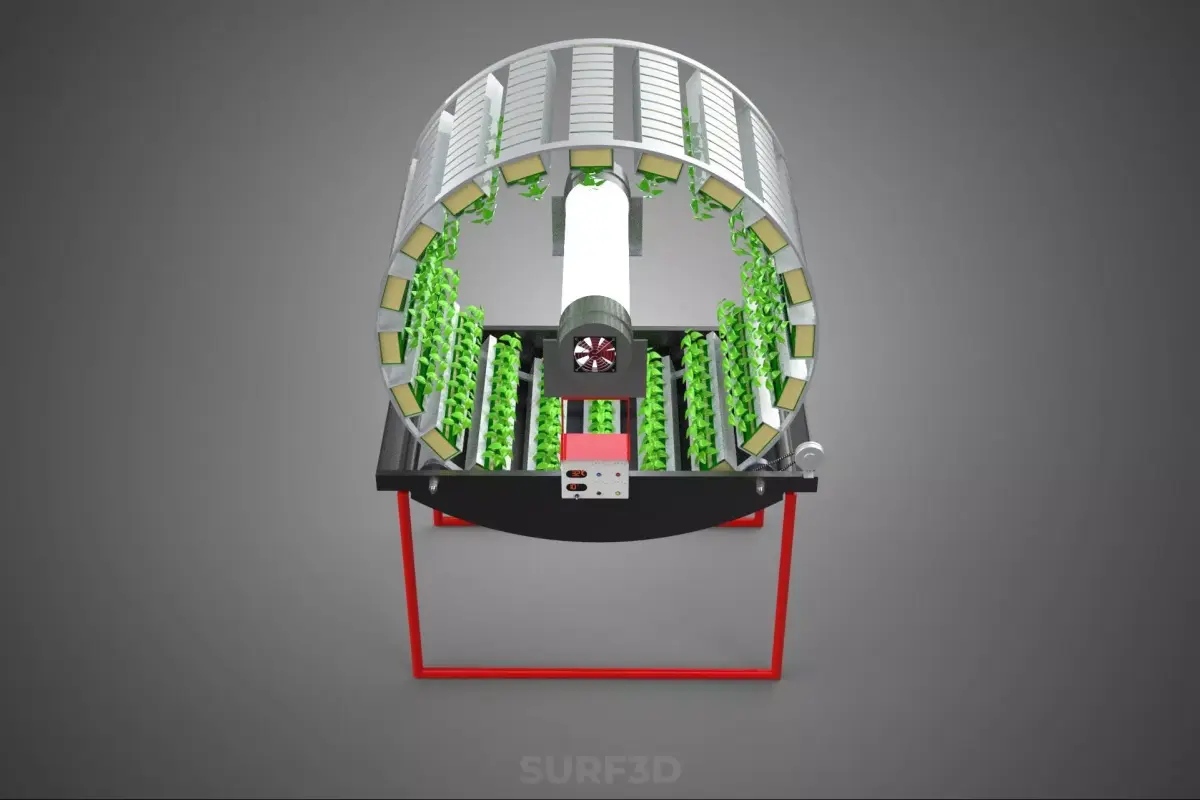 - Optimized Light Exposure: The rotational movement ensures uniform exposure of all plants to a central or strategically placed artificial light source (typically high-efficiency LED grow lights), preventing shading, promoting consistent growth, and maximizing the photosynthetic efficiency across the entire system.