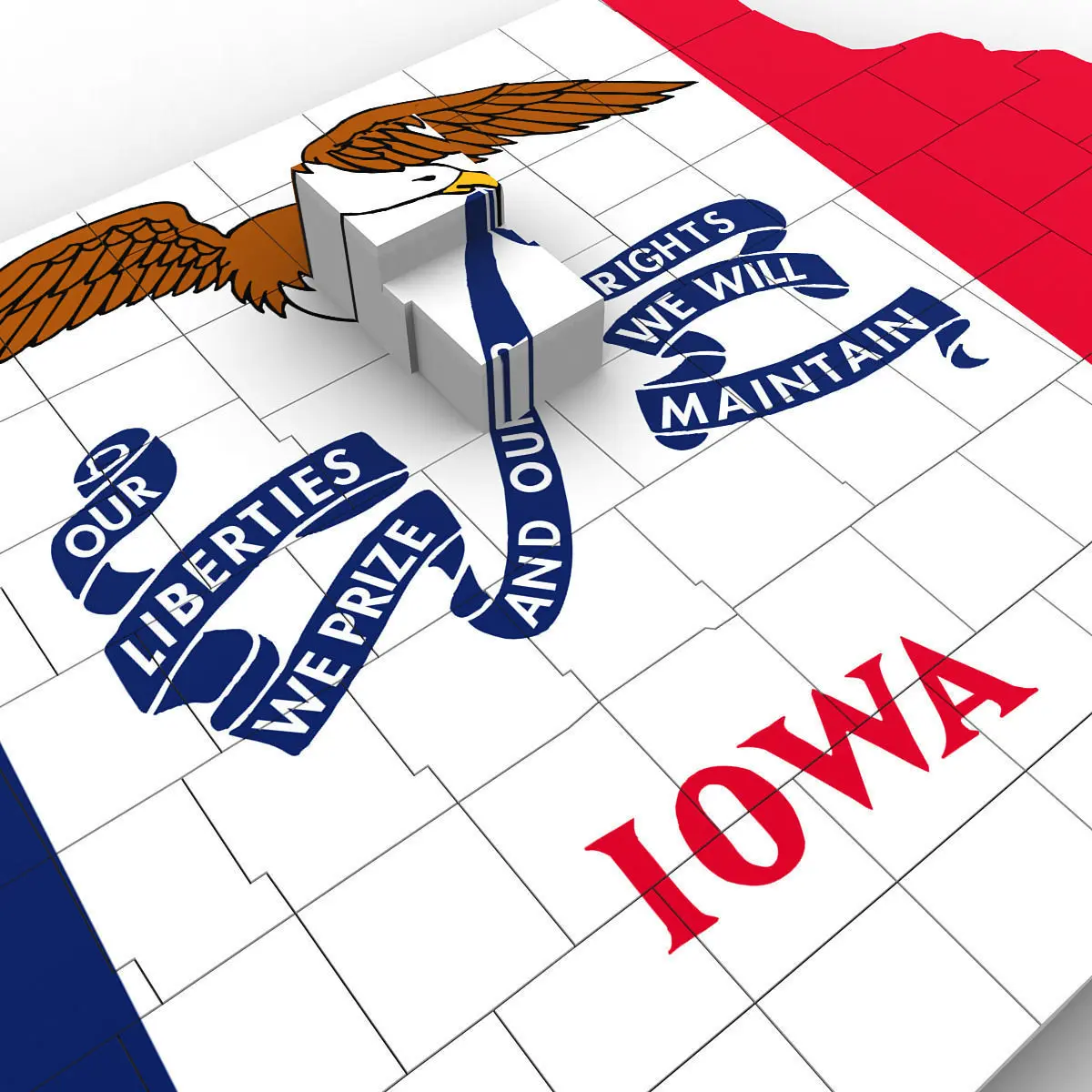 3d Model of the Political Map of Iowa. Features every county in the state. The modifier stack is uncollapsed allowing for easy change of extrusion settings.