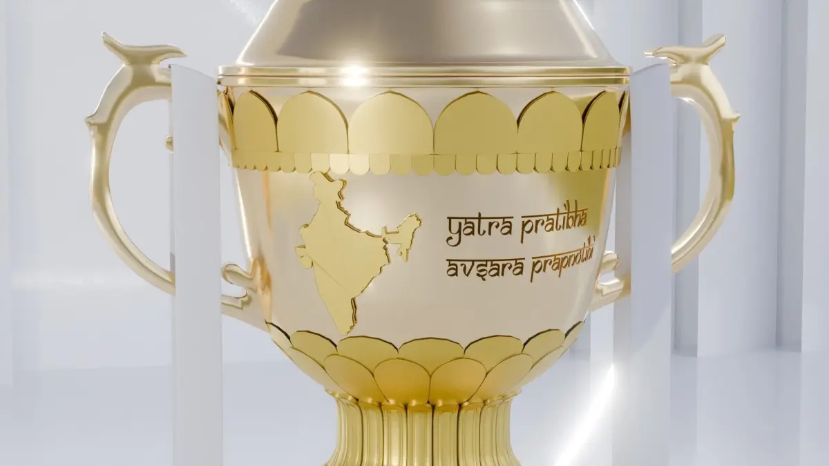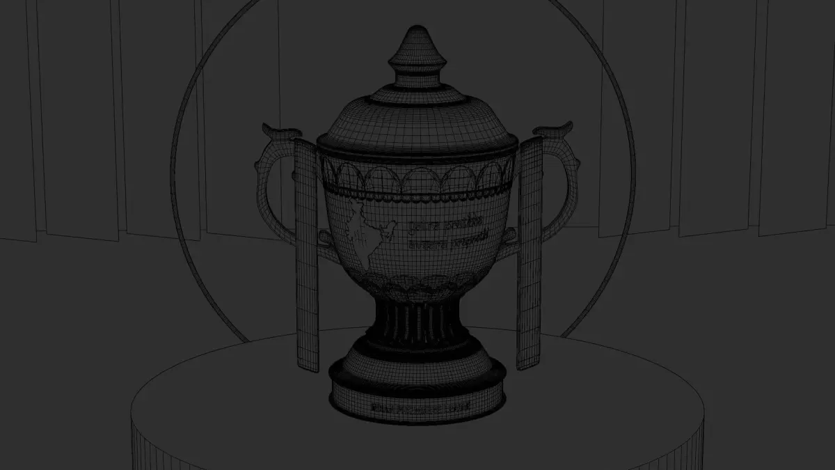 This 3D model showcases the iconic IPL trophy in exquisite detail, making it an exceptional choice for cricket fans and designers alike. The golden trophy features two elegantly curved handles and a reflective finish, symbolizing excellence and prestige. At its center, the engraving of the Indian map paired with the Hindi phrase 'यत्र प्रतिभा अवसर प्राप्तो' (Yatra Pratibha Avasara Prapnotihi) adds cultural significance and authenticity. The sturdy base highlights the engraved text 'INDIAN PREMIER LEAGUE,' grounding the design in its rich cricketing heritage. This meticulously crafted model is perfect for gaming, animation, sports-themed projects, or as a collectible digital centerpiece, celebrating the glory of the IPL.