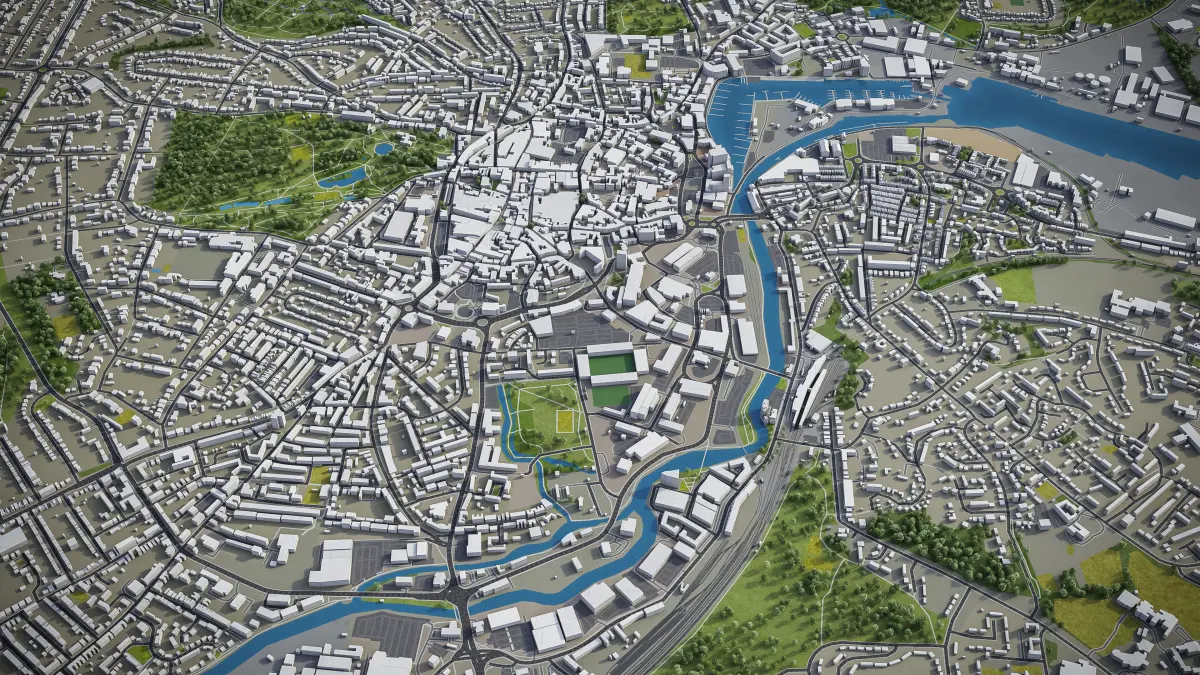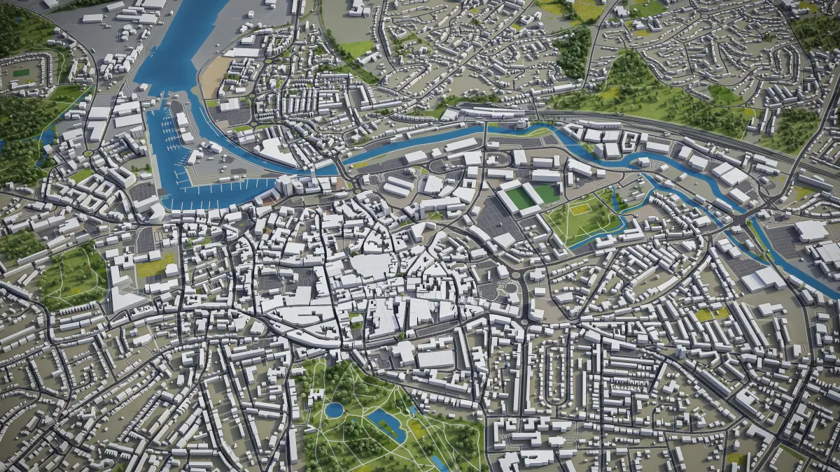 - Full city extents up to 100 x 100 km — or crop to the area of interest for better format compability and scene performance
