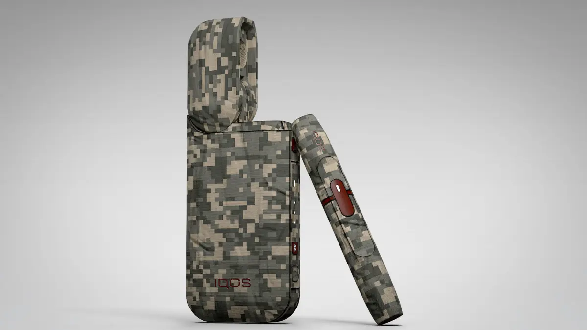 Lowpoly model of the IQOS smoking device in stylized camouflage look.