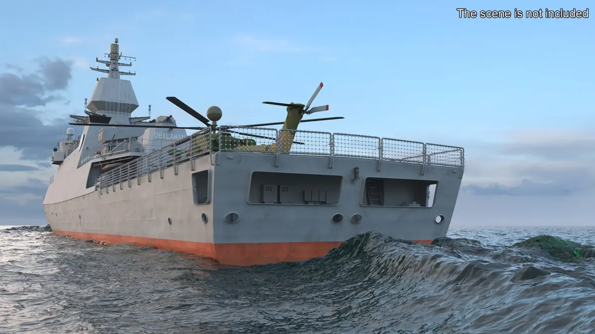 Iranian Destroyer Deylaman with Helicopter Rigged is fully rigged and is ready to be animated. You can easily position it the way you need or animate it the way your project requires using helpers in 3D Studio Max. See the turntable to get an idea of how rigging works. The pose of the model on the render images is an example and can be recreated using rig, it is not initially included into the product.