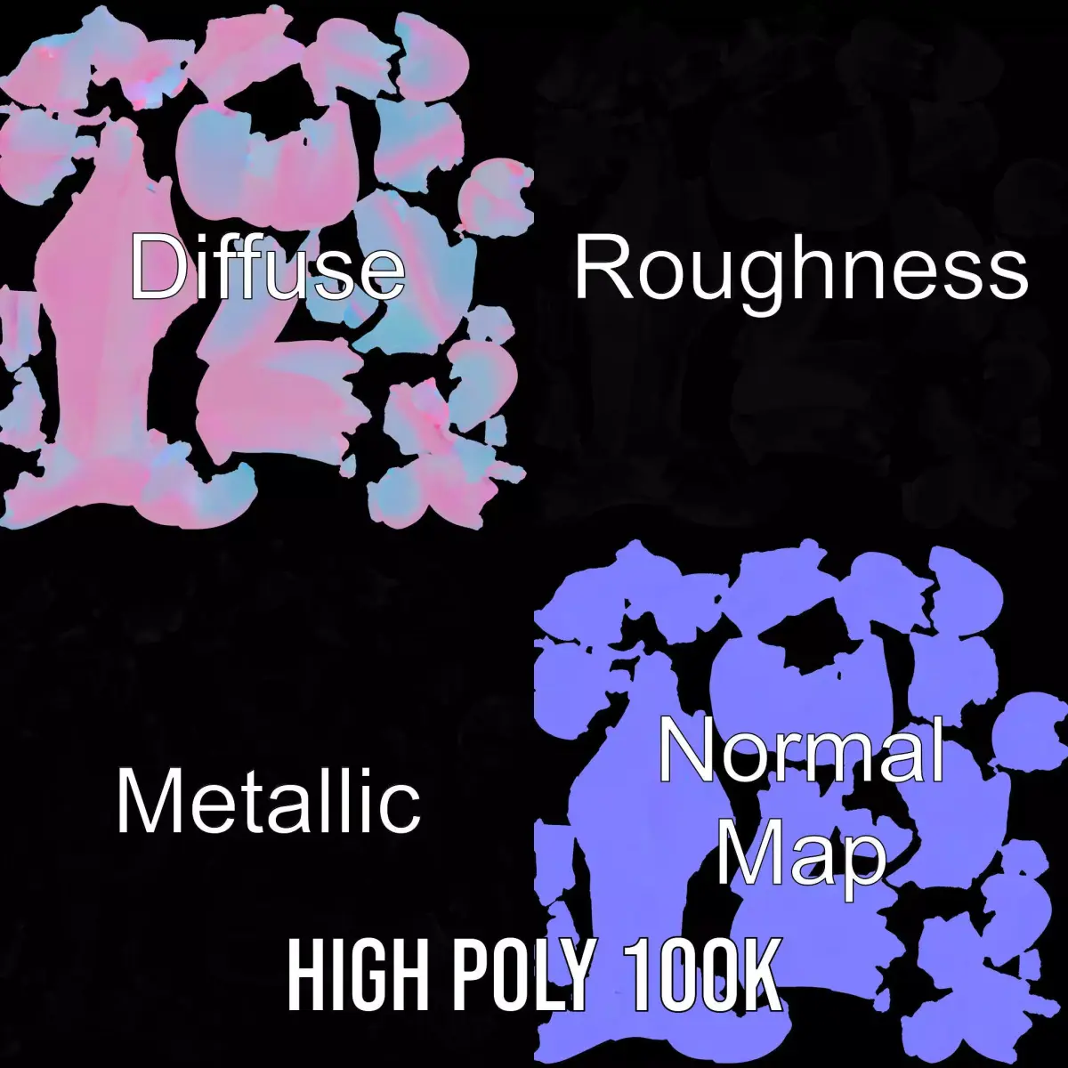 This Iridescent Spiral Blossom model pack features a stunning, abstract design with vibrant colors seamlessly blending between shades of pink and blue. The model's organic and fluid shape resembles a futuristic flower or art piece, ideal for adding a modern touch to any digital scene. Each model has 3 levels of detail: low-poly (1000 triangles for mobile), middle-poly (10,000 triangles for environment), and high-poly (100,000 triangles), which allows for the use of this model in production rendering (such as 3ds Max, Maya, Cinema 4D, Blender, Vray/Corona/Cycles and all other), game engines (Unity and Unreal compatible), and interactive presentations, providing a choice of detail based on the LOD System principle. Suitable for use in sci-fi environments, modern art galleries, or virtual reality experiences. The model's textures are PBR, Diffuse, NormalMap, and reflection/roughness/metallic, which are suitable for any modern rendering engine. All models are accurately unwrapped and have no overlapping UV. All textures are 4096x4096 in size. Please like and comment if you enjoyed this model.