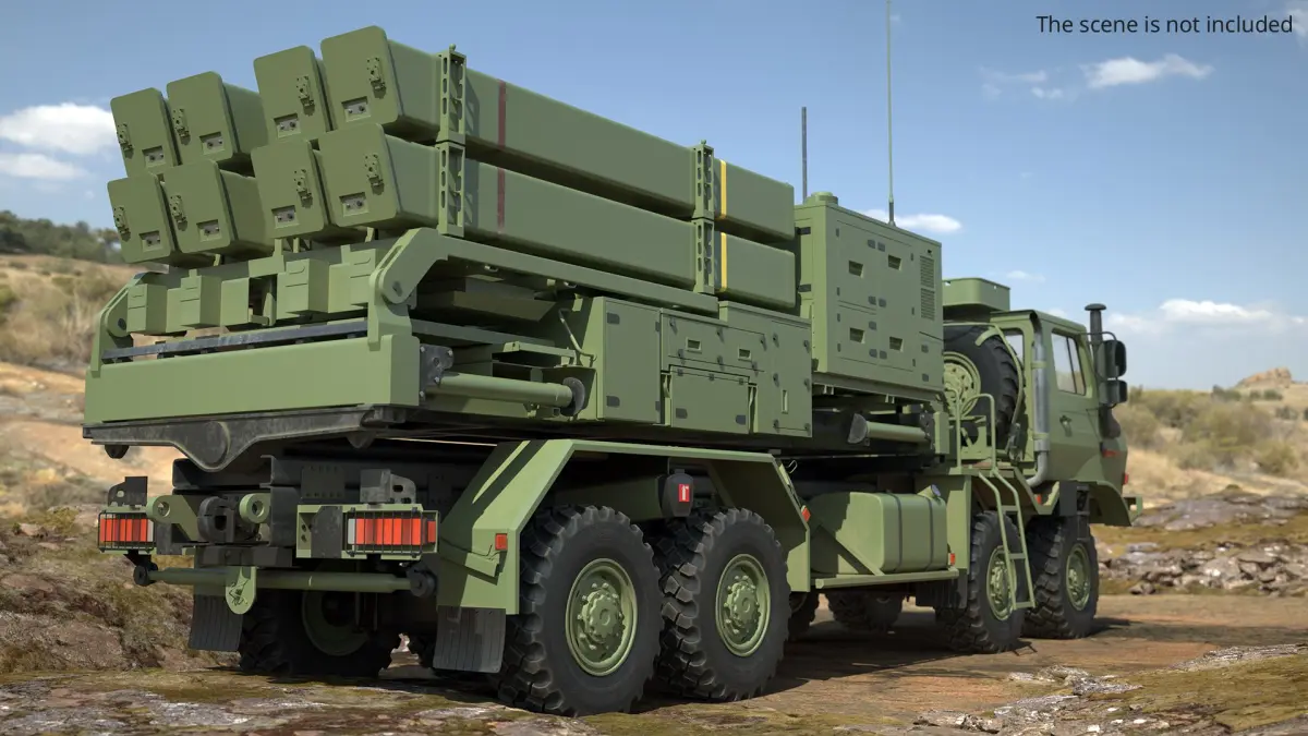 IRIS-T SLM SAM Launcher is a 3d model of a tactical missile launcher vehicle designed for military applications and battlefield support.